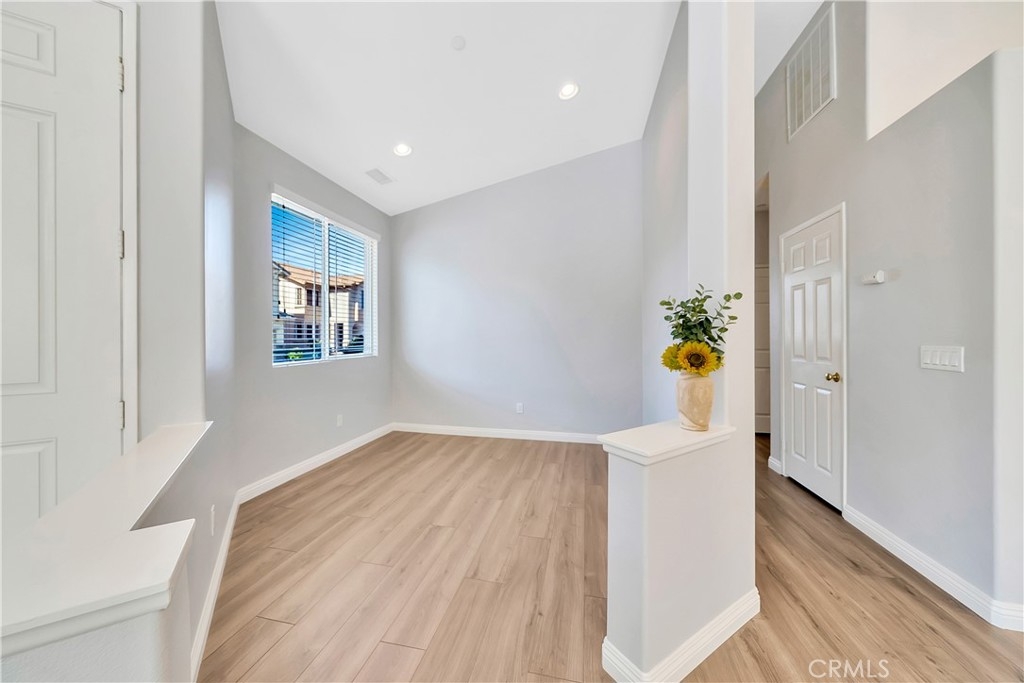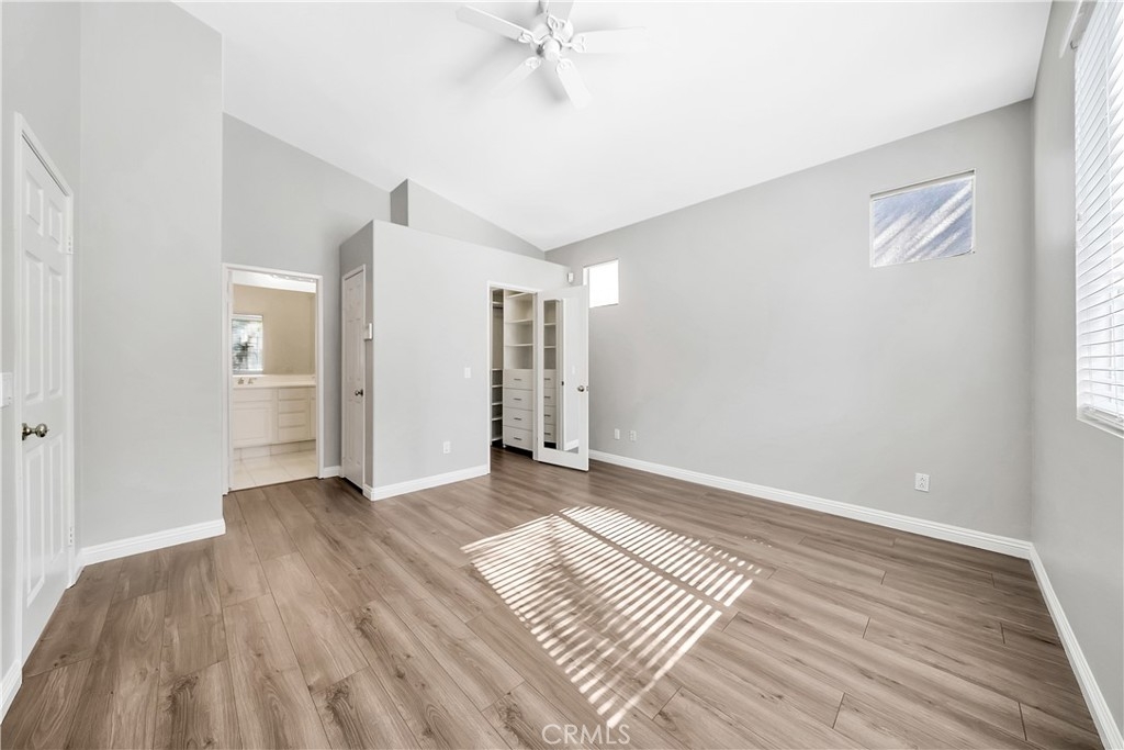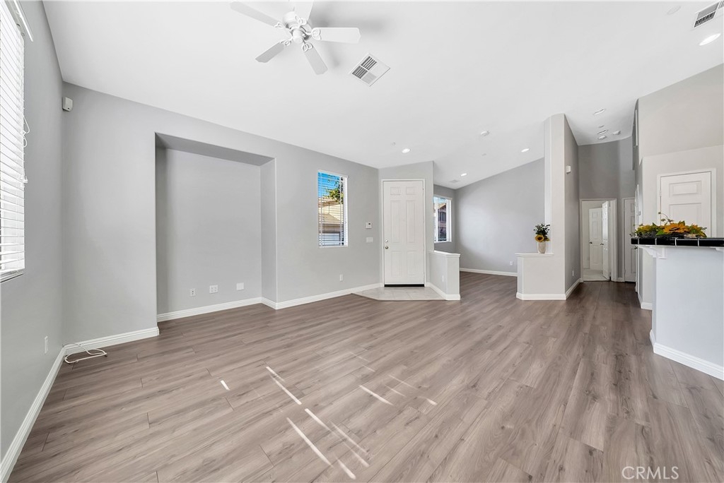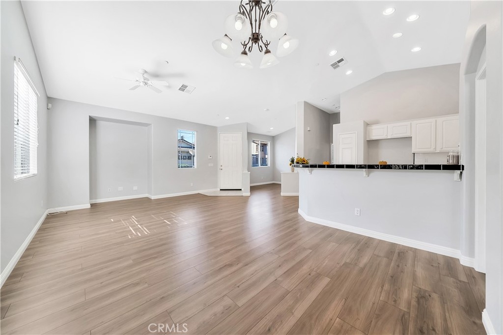Immaculate, turnkey SINGLE LEVEL home in the highly desired Coronado Riverwalk community. Single Levels DO NOT COME UP in this Desired Track. Move-In Ready! This home boasts an open floorplan with vaulted ceilings, upgraded laminate flooring, recessed lighting, a large master bedroom with an ensuite & custom closet rack, along with the guest bedroom and full bathroom on the opposite side of the house. This home also offers an open room off the entry that can be easily converted to a 3rd bedroom, or enclosed office space. No common walls with neighbor, other than the 2-car garage. Community features include two sparkling pools, walking trails and park. This Riverwalk community is centrally located, close to freeways, shopping, fine dining, schools, dog park, hiking and La Sierra University. LOW HOA’s! Welcome Home!