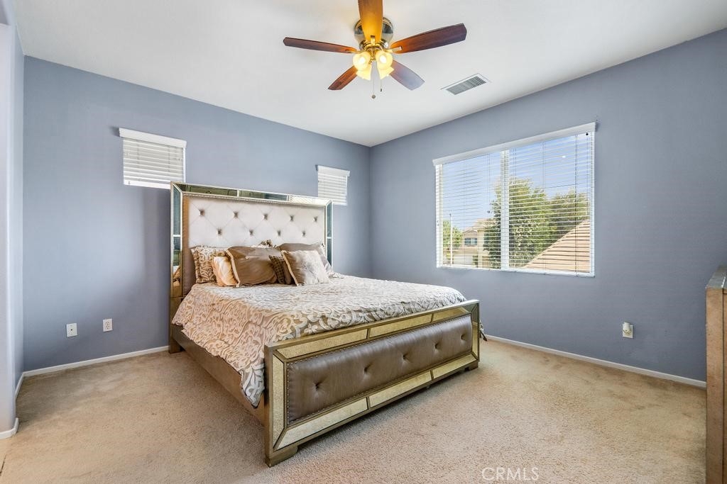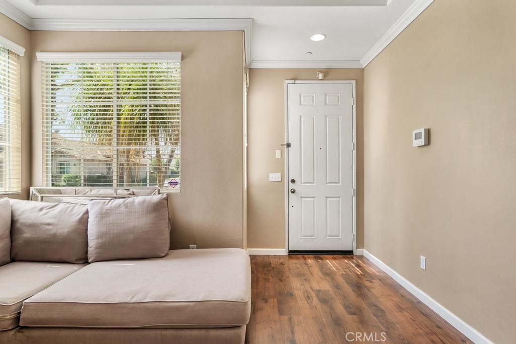 This beautiful home is located in the lovely Riverwalk Coronado Village Community near La Sierra University. Great corner lot location. Wood laminate flooring was installed downstairs in 2020. This home has four bedrooms, three bathrooms, a living room, and a family room. The kitchen is open with an island, granite countertops, pantry as well as built-in appliances. The dining room has a sliding glass door that opens to the large side and back-yard concrete patio area. Great for entertaining. Other features are crown molding and recessed lighting. All bedrooms have carpet and are located upstairs. The master bedroom features a large oval bathtub with a separate shower. There are dual vanities in both upstairs bathrooms. The upstairs laundry room is a plus with storage. The grounds are lovely. It includes the association pool, lots of greenery as well as a pond. Come and see for yourself.