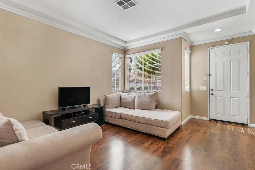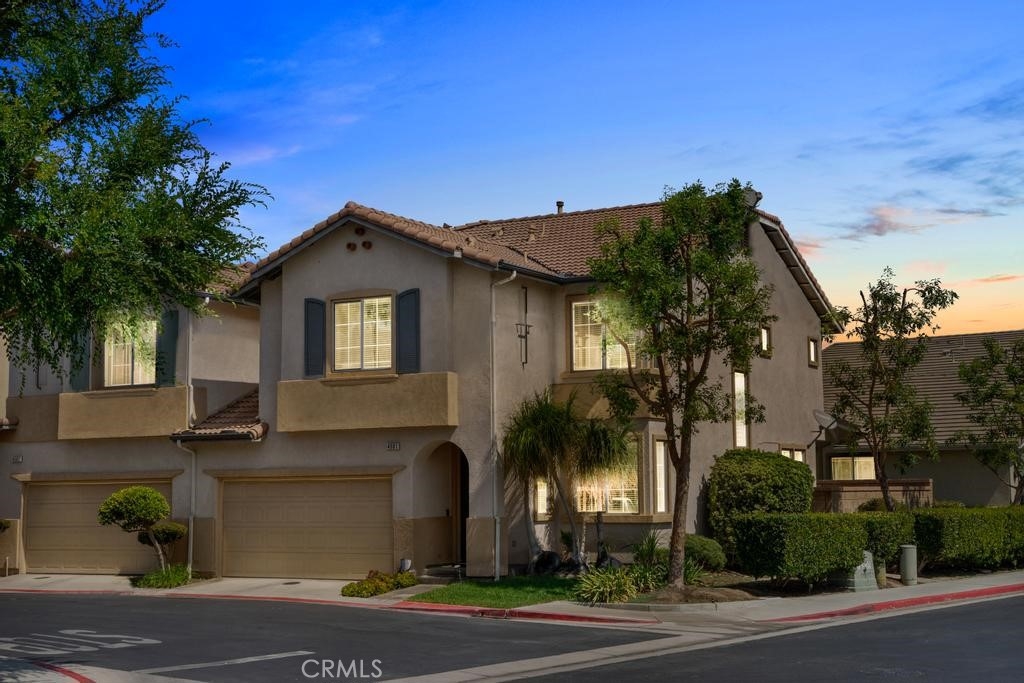 This beautiful home is located in the lovely Riverwalk Coronado Village Community near La Sierra University. Great corner lot location. Wood laminate flooring was installed downstairs in 2020. This home has four bedrooms, three bathrooms, a living room, and a family room. The kitchen is open with an island, granite countertops, pantry as well as built-in appliances. The dining room has a sliding glass door that opens to the large side and back-yard concrete patio area. Great for entertaining. Other features are crown molding and recessed lighting. All bedrooms have carpet and are located upstairs. The master bedroom features a large oval bathtub with a separate shower. There are dual vanities in both upstairs bathrooms. The upstairs laundry room is a plus with storage. The grounds are lovely. It includes the association pool, lots of greenery as well as a pond. Come and see for yourself.