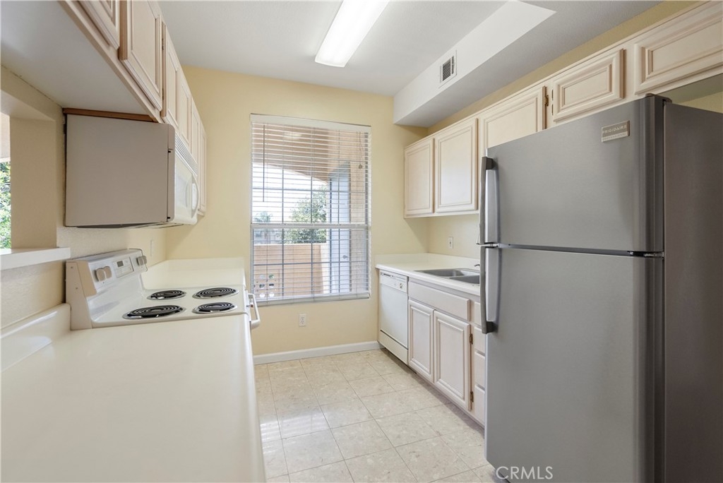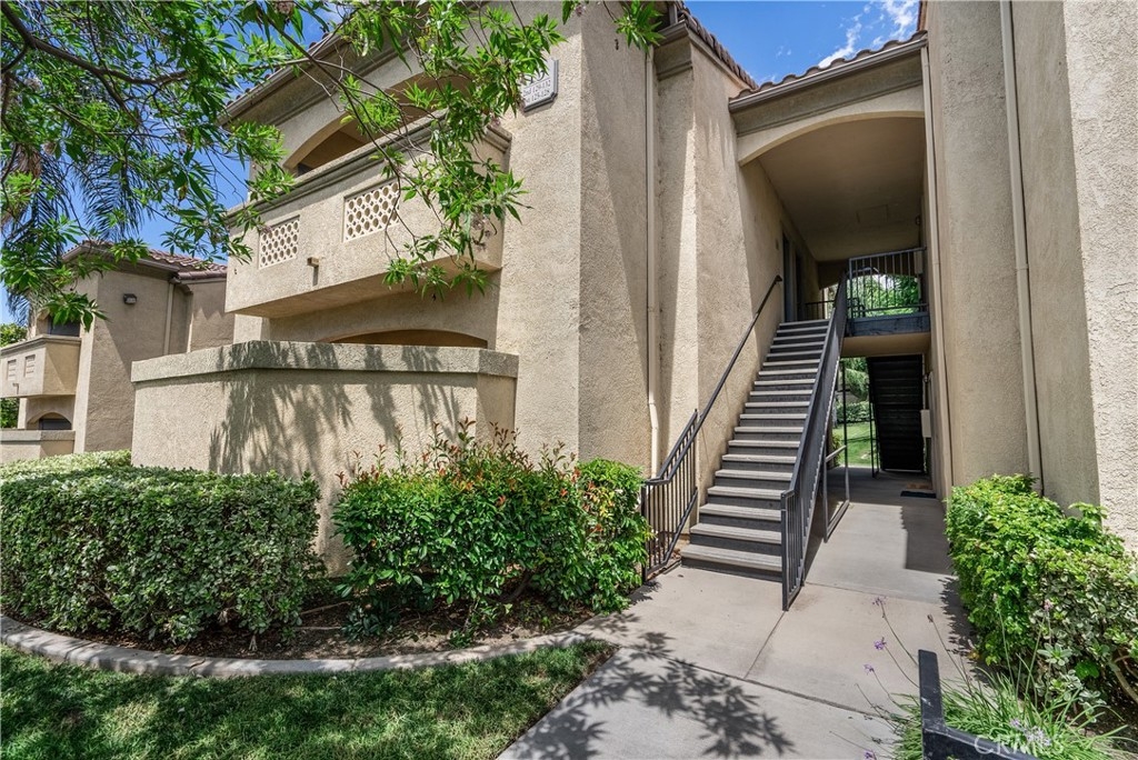SONATA AT CANYON CREST - Updated condo in the gated Sonata community. This upstairs unit is turnkey and located in an ideal part of the complex, with private covered balcony and convenient access to community amenities. The kitchen features solid surface countertops, refrigerator, and stove. In-unit laundry closet includes stacking washer/dryer. Updated laminate flooring throughout, with high ceilings and central air. The unit includes one covered carport parking space and ample guest parking. The complex offers a community pool, spa, exercise room, and more. Located near UC Riverside, Canyon Crest Towne Center, Sycamore Canyon Wilderness Park, and freeways.