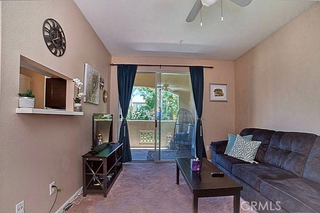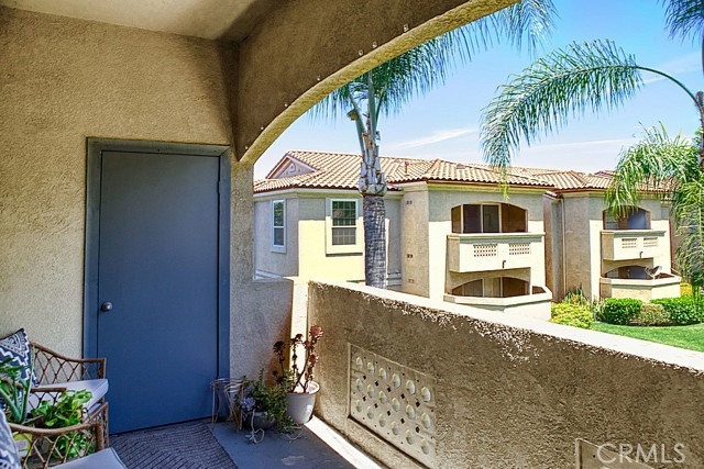 Lovely 1 Bedroom, 1 Bathroom condominium within the gated community of Sonata at Canyon Crest. This corner unit is ideally located on the upper level with a large balcony where you have an expansive view of a lush green area with mature palm trees, well maintained by the HOA. The condo interior has a living room with a slider to the balcony. The bright kitchen has ample cabinets and stainless-steel appliances, a refrigerator is included. There is a dining area with room to seat four. There is also a space saving bi-fold door closet which houses the stackable washer dryer included with the sale. The Bedroom has a mirrored closet and a laundry closet. The bathroom has a tub shower combination. There is assigned car port parking. This community has an abundance of amenities: Tennis Court, Pool. Spa, BBQs, Fitness Center. Sauna and Clubhouse with even more inside. Canyon Crest is a beautiful area of Riverside, within minutes of Canyon Crest town center, shopping, dining, and freeways. HOA Dues $295.00 per month includes Trash and Water.