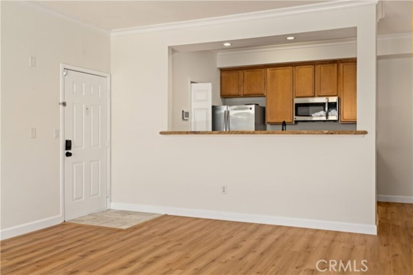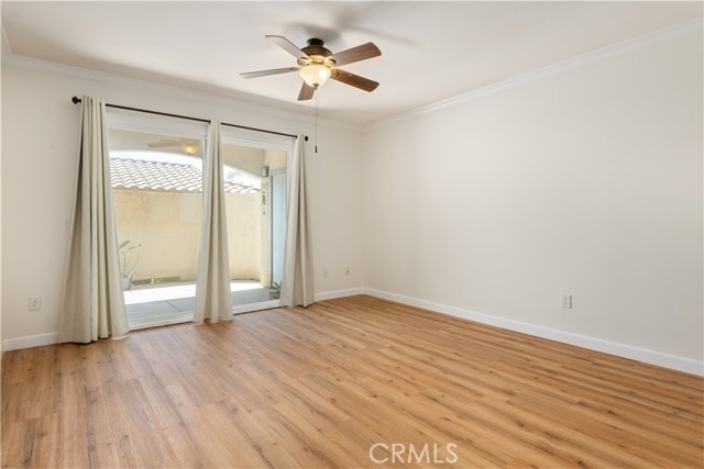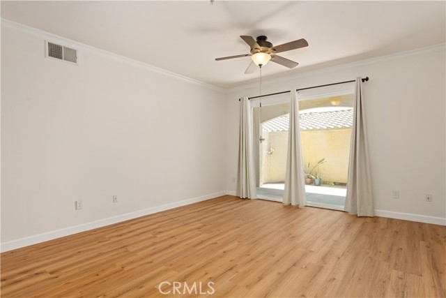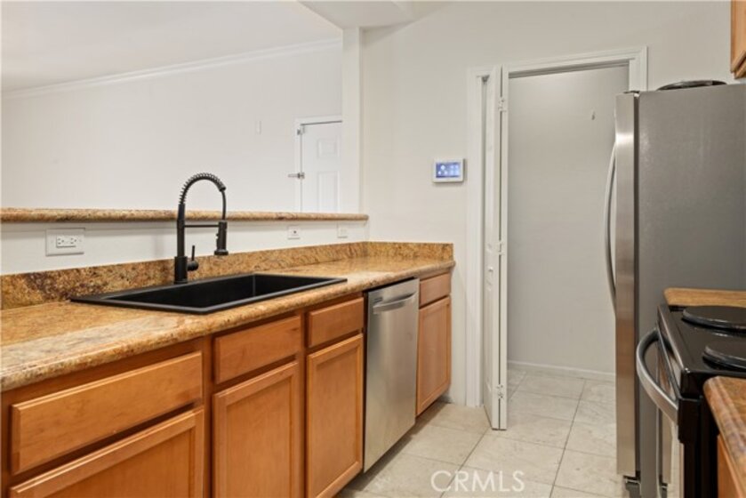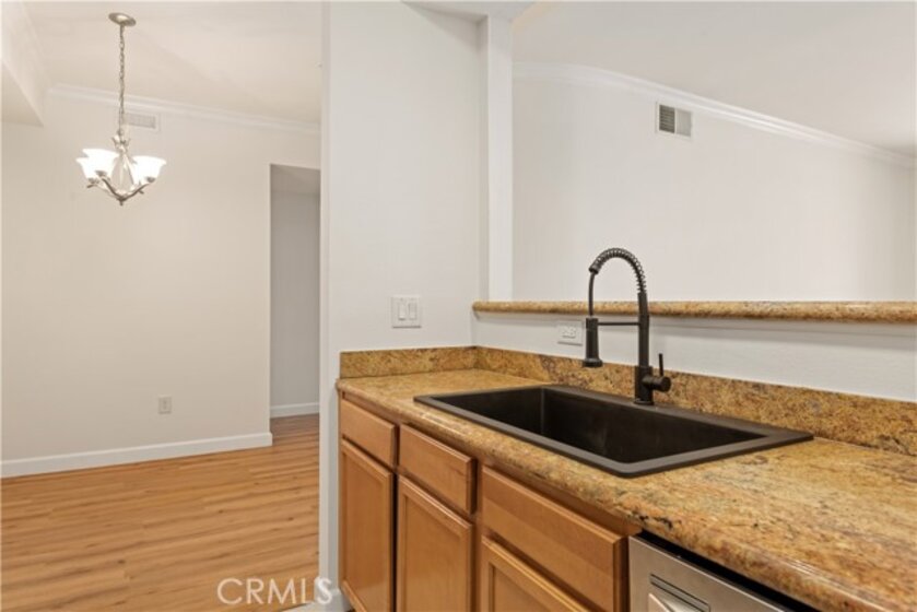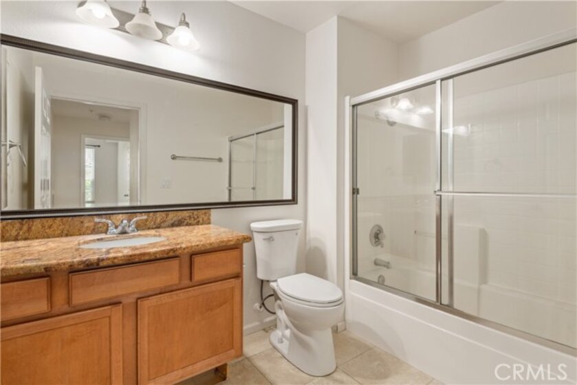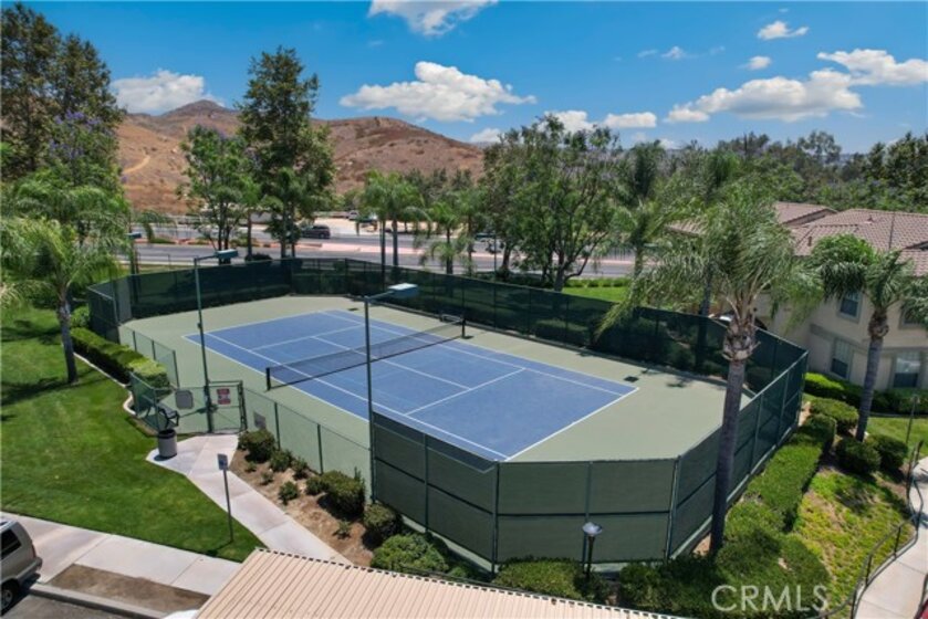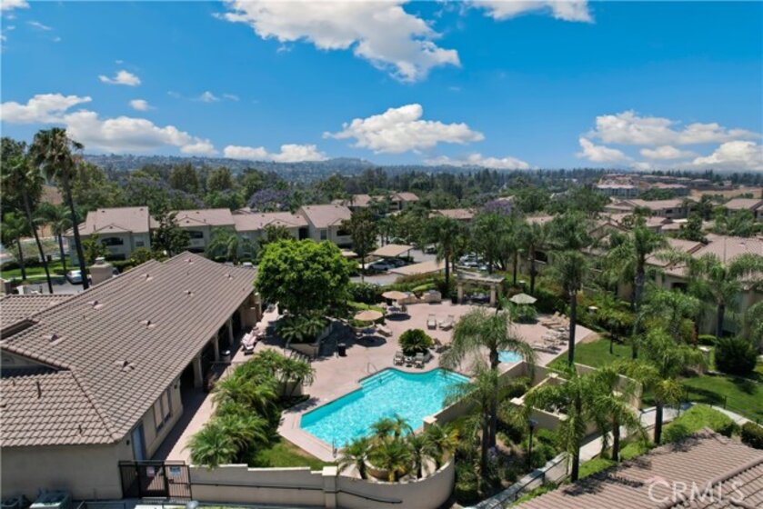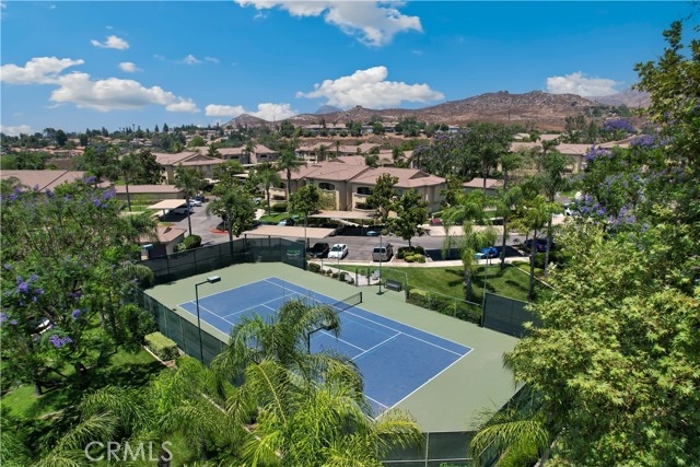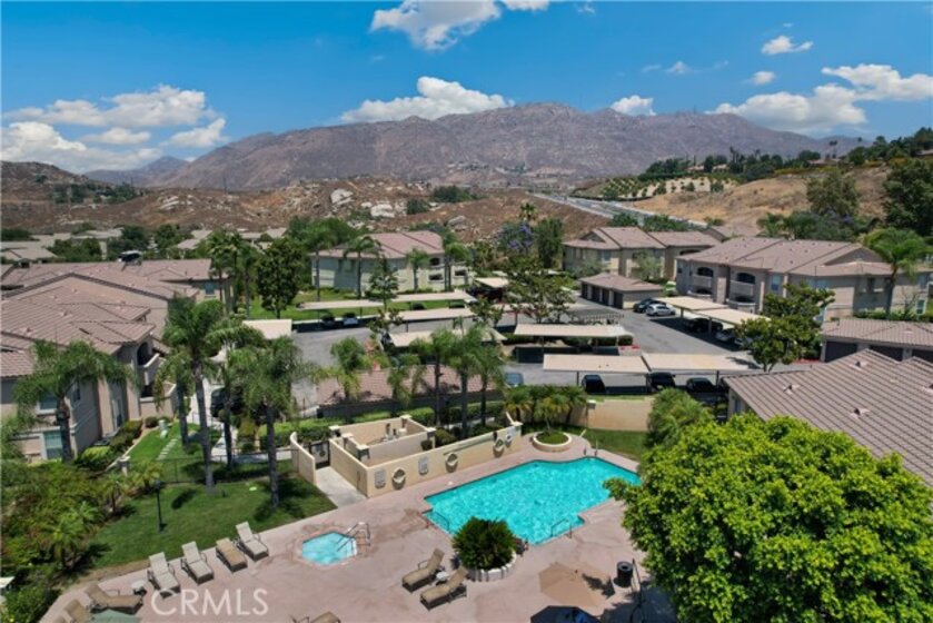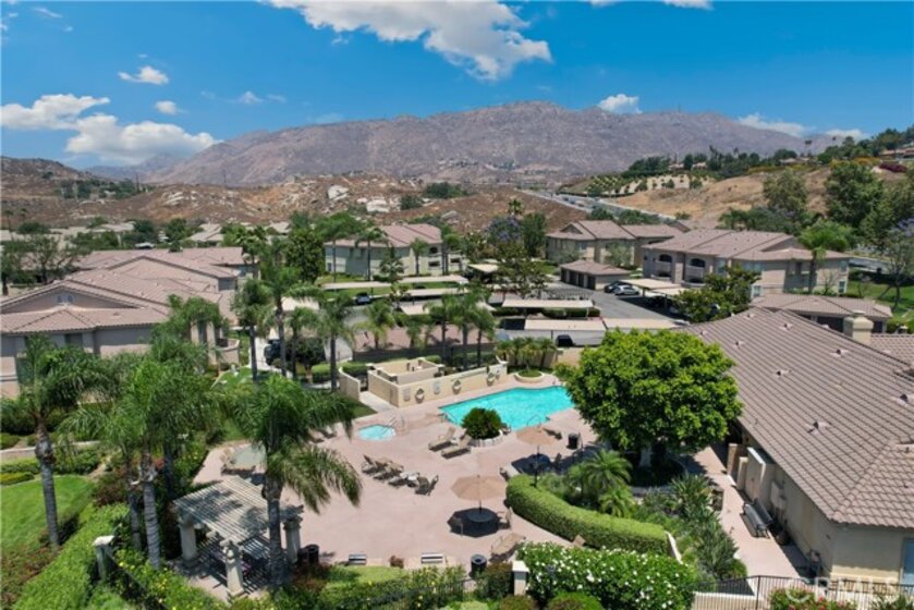 Charming condo in the gated community of Sonata at Canyon Crest! Featuring an open floorplan with living, dining, and kitchen areas, this home boasts laminate flooring and a private patio off the living room. Custom energy-efficient windows and sliding doors were installed in 2021. The kitchen is equipped with granite counters, stainless steel appliances, and a large utility sink. Laundry room conveniently located off the kitchen. The hallway leads to 2 spacious bedrooms and 2 full bathrooms, including a primary bedroom with an ensuite bathroom. Enjoy the association's amenities: a beautiful pool, spa, and tennis court.