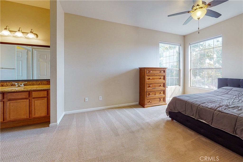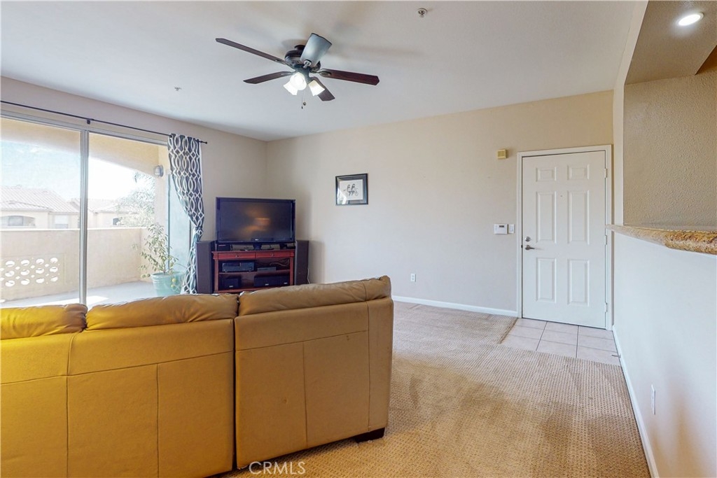 Beautiful 2-bedroom 2-bath upstairs unit in the highly desirable, gated Sonata at Canyon Crest. Views of the San Bernardino Mountains and nearby hiking trails. This naturally lit, private unit offers an open floor plan with 9’ ceilings and central air/heat. This 1,121 square foot luxury condominium has spacious rooms, mountain views and a private patio. The kitchen includes a breakfast bar, granite countertops, ample cupboard space with stainless-steel GE refrigerator, built in microwave, dishwasher, stove and oven. The laundry room has full-size Whirlpool washer and dryer, and plenty of storage space. Each bedroom has large windows and a walk-in closet, with large additional storage space. There is a separate coat closet in the hall. The unit has one reserved covered parking spot with ample additional parking close by. The quiet complex boasts resort style living including: a swimming pool and jacuzzi, BBQs, a sauna, gym, game room, movie theatre, and tennis court surrounded by beautifully maintained grounds and walkways. Low HOA fees that include water and trash. Great location, close to UCR and Canyon Crest Towne Centre restaurants and shopping. Great hiking right across the street at the Sycamore Canyon Wilderness Park