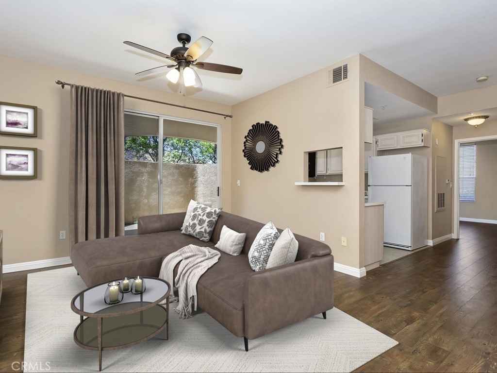 Terrific GROUND LEVEL condo in well kept Sonata complex. Easy commute to universities, freeways. Updated flooring, and bathroom. TWO bedroom closets (1 walk in, 1 regular). Indoor laundry, and appliances included! Large living areas, well laid out. Great for first home, single buyer, downsize. Move-in ready!
