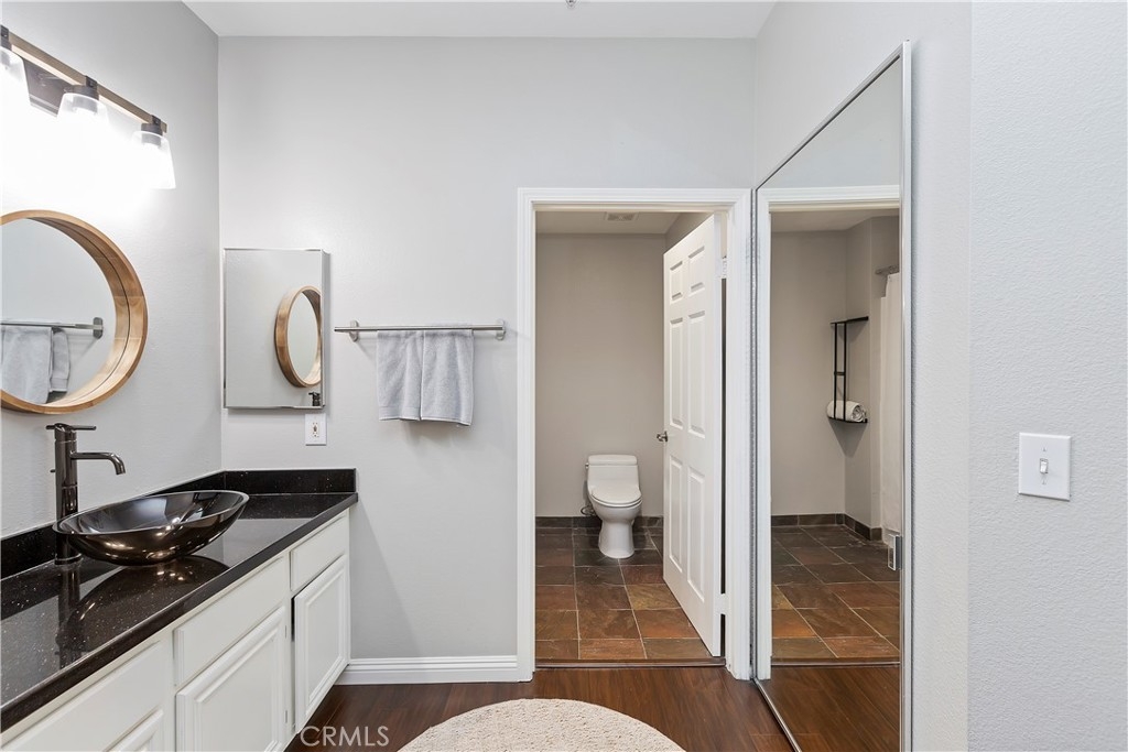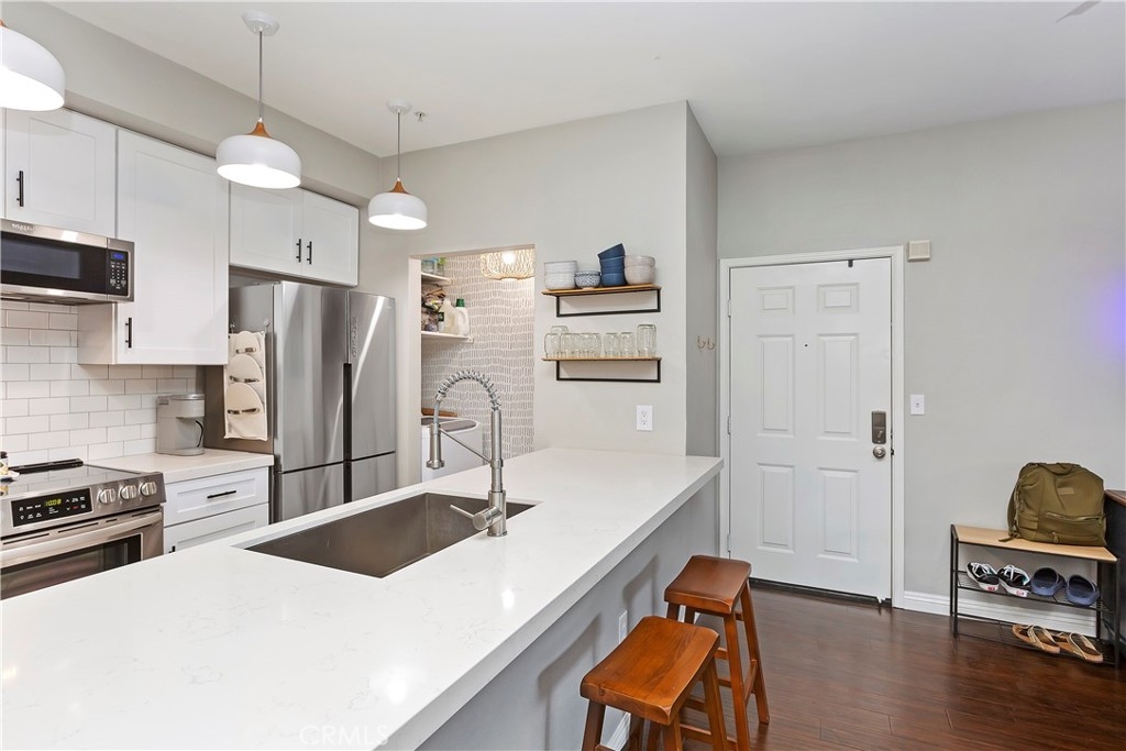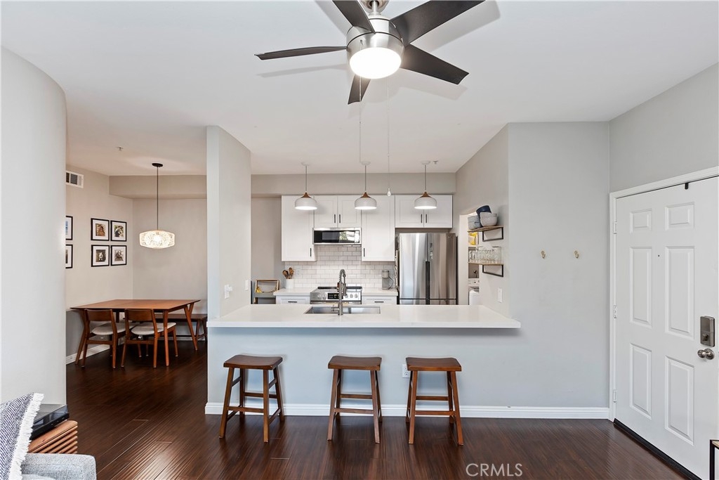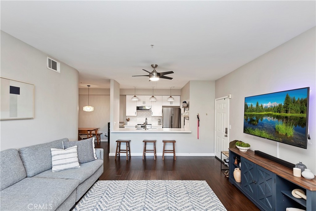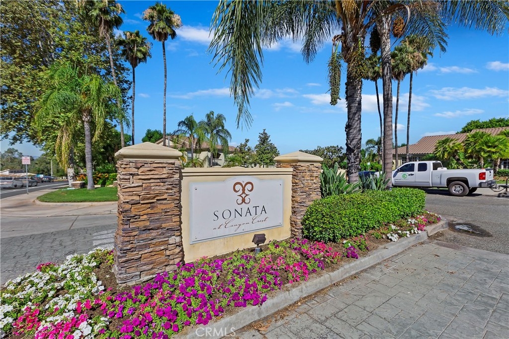 Welcome to the Sonata at Canyon Crest! This complex is located in a quiet neighborhood with quick access to all major Inland Empire freeways. This 2 bedroom/2 bathroom condo features hardwood floors upon entering the large living room and throughout the home and custom tile flooring in the kitchen with high baseboards throughout. The kitchen features stainless appliances, a farmhouse sink, quartz countertops and custom subway tile backsplash giving it a very modern, clean look. The laundry room is off the kitchen out of the way. Off the kitchen, you will find the dining room. Each of the rooms in the condo have ceiling fans keeping the home cool throughout the year. The guest bath has granite counters, an upgraded faucet and custom fixtures. The large guest room has a walk-in, vanity mirrored closet. Make your way into the master suite and find a huge room with en-suite that has granite counters, an upgraded faucet and updated fixtures. The bathroom is separate for privacy. The Sonata complex has plenty of amenities including but not limited to a swimming pool and spa, BBQ area, a workout Gym, a clubhouse and private tennis courts. This community is walking distance to the Canyon Crest Towne Center, The Canyon Crest Country Club and UC Riverside. Close to all local schools, churches and shopping. Do not miss this gem of a Condo!
