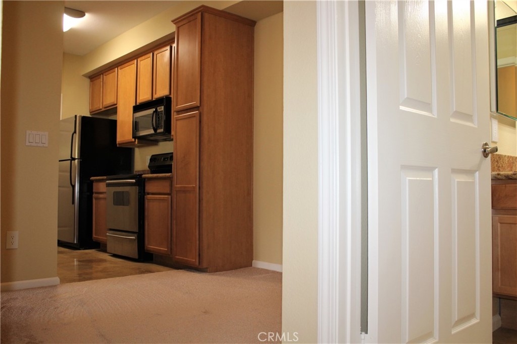 Super sharp 2 bedroom 2 bath condo in the beautiful Sonata complex in the Canyon Crest area of Riverside! One of the most desirable complexes in Riverside! This condo is an end unit, all on one level, on the 2nd floor. LOADS of upgrades!! Freshly painted throughout and has new carpeting! Newer forced air natural gas furnace and air conditioning unit. The spacious living room has 9’ ceilings and custom installed fan, with a sliding glass door that open to your private covered balcony! The kitchen features granite counter tops, hardwood cabinets, tile floors, stove, microwave, refrigerator and a NEW Maytag dishwasher! Kitchen also includes new garbage disposal, faucet, drain and water connections. There’s also a breakfast bar! Formal dining area off the kitchen with custom ceiling fan. The master bedroom is huge and includes a walk in closet and ceiling fan. The master bath is totally remodeled with custom tiled shower with river rock floor, beautiful shower doors, new water saving toilet and quiet exhaust fan. The 2nd bedroom is spacious and features a walk in closet and ceiling fan. The hallway bathroom has a custom installed steel bathtub (with shower), custom tile, beautiful shower doors, new toilet, quiet exhaust fan and all new sink parts. Indoor laundry room with full size dryer and newer Maytag washer. New tankless water heater. LOTS of storage space inside and on the balcony and upgraded LED lights throughout. Low dues of only $265 per month, which includes your water and trash. Covered carport #115 goes with this unit. This unit is close to the pool area and clubhouse. The complex offers gated parking, a wonderful clubhouse, pool, spa, tennis court, exercise room, sauna, BBQ area and lots more! Close to freeways, UCR and shopping! Please check out all the pictures and Tour Factory Virtual Tour, then give us a call for your private showing!
