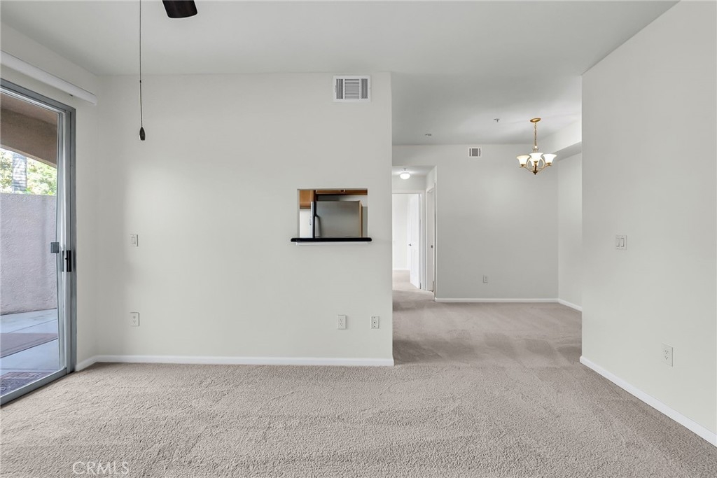 Canyon Crest – This first-floor condo in the desirable Sonata community is move-in ready with fresh paint and new carpet. Just steps from the community greenbelt, the home welcomes you into a bright and airy living room that opens to a private, gated courtyard patio. The upgraded galley-style kitchen features granite countertops, abundant cabinetry, stainless steel appliances, and travertine flooring, with an adjacent dining nook that completes the main living area.The spacious primary bedroom is filled with natural light and offers two generously proportioned closets. A centrally located full bathroom includes travertine flooring, granite countertops, and a refinished tub enclosure. Community amenities include a swimming pool, walking paths, greenbelts, and a clubhouse. Enjoy the convenience of being minutes from Canyon Crest Town Center, the University of California, Riverside, Sycamore Canyon Wilderness Park, and easy access to major freeways.