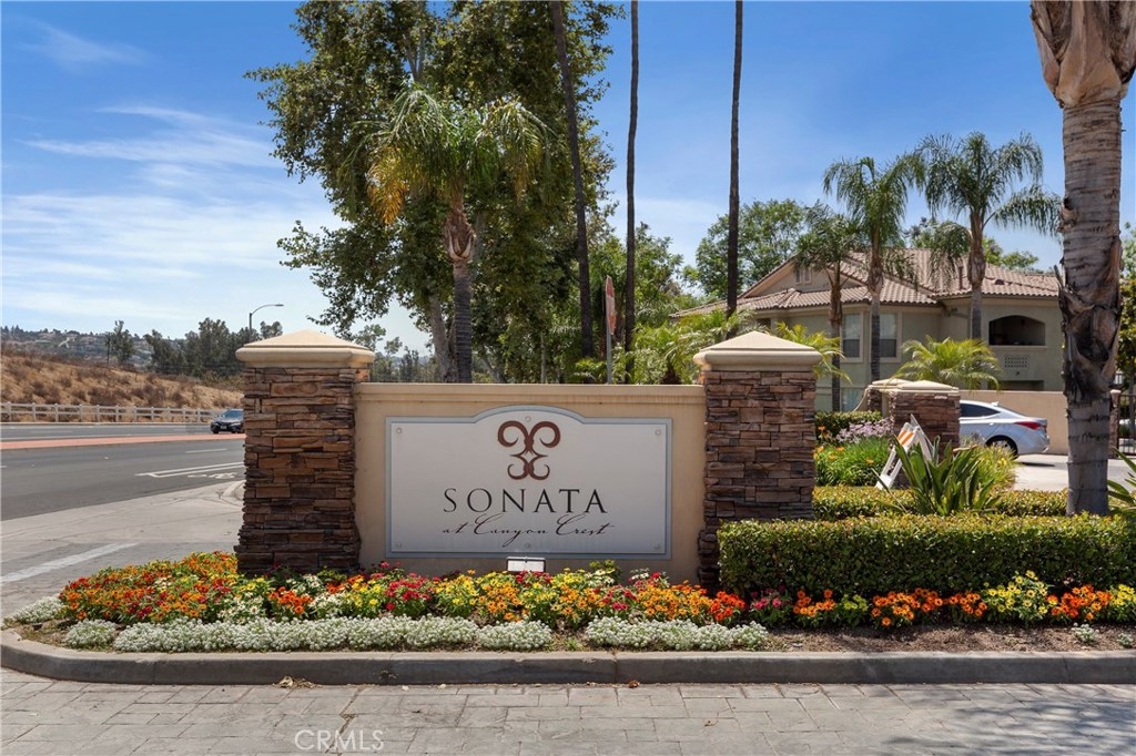 Lovely condo in highly sought after Sonata Development. This is the larger 2BR/2 Bath floorplan in the community with two spacious walk-in closets. The 1 car garage, #19, is conveniently located just out in front of the unit. Not many like this in here. Spacious living room that leads to private balcony. Kitchen has been upgraded with modern white cabinets, and matching stainless steel appliances. Unit also comes with refrigerator, along with a full size washer & dryer just off the kitchen. Tile floors, nice carpet and paint make this show well. Master has large bath and walk-in closet. Really nice development with clubhouse, pool & spa, tennis courts, and located directly across the street from the beautiful Sycamore Canyon Wilderness Park with a view overlooking this well-maintained nature preserve that offers a quick getaway in the middle of the city with miles of hiking trails, spring wildflowers, small creeks, sunsets and sweeping views of Riverside.