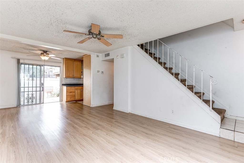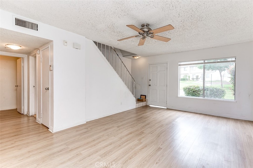 Great opportunity for first home buyer, this 4-bedroom 2-bathroom two story townhome is located in a gated community. One bedroom and one full bath is located on the main level. 3 bedrooms 1 full bathroom is located on the second floor along with its own laundry space. There is a spacious private patio area with direct access to the covered carport/storage area. HVAC and AC condenser have been replaced in 2021 and water heater has been replaced in 2022. Two assigned parking spaces ( 1 car port and 1 open space ) just behind the back patio. This unit is located next to the park-like common area and with close distance to the community pool. Close to schools, shops and freeway access to 215, 91 and 60.