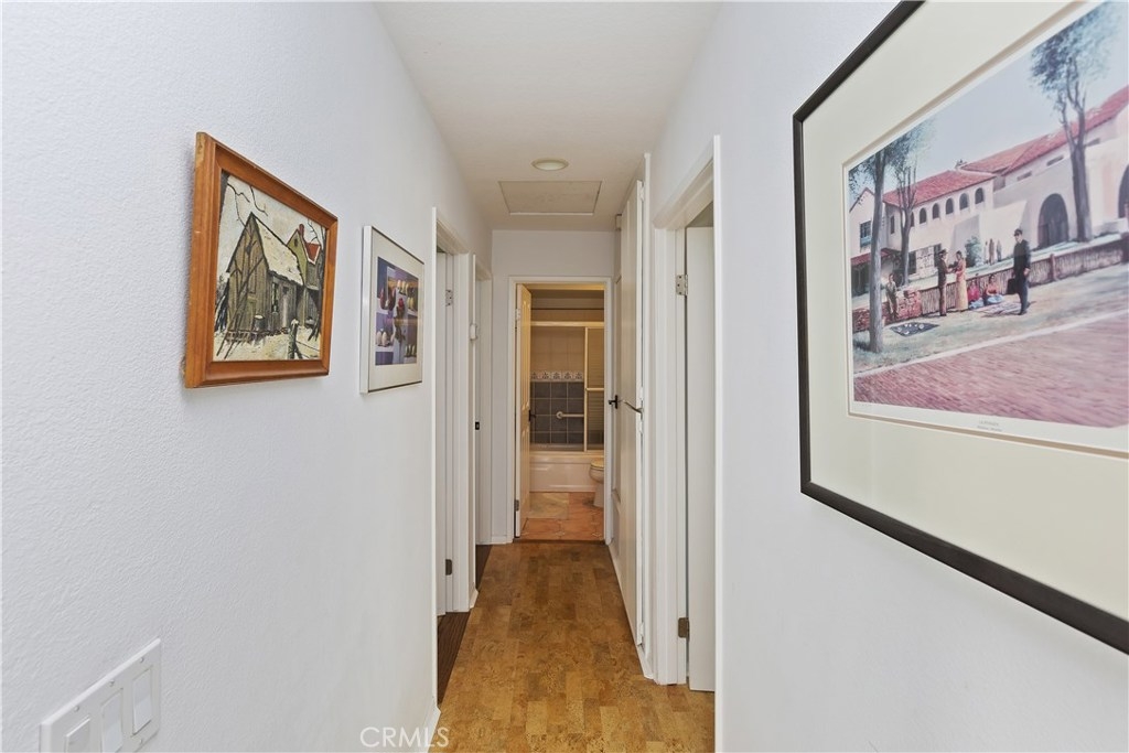 A View of the Valley and Downtown Riverside! Rarely does a condo of this artistic caliber come on the market. This home was remodeled to perfection opening walls and creating a open airy feel. This private gated community of Sunset Ridge sits on the ridge of a hill with sweeping views! Saltillo tiles, cork flooring, Shaker/Mission style cabinetry and built-ins abound in this home. A super spacious gourmet, craftsman style kitchen with hard to find custom details. Newer sliders and glass doors take advantage of the view. A ledger rock fireplace, interior laundry area, and much more. The Master bedroom is positioned to take advantage of the view while the Master Bathroom has been remodeled with walk in shower. Extensive built-ins, and custom lighting add to the drama of this home. Each bathroom has custom Santa Fe style wood cabinets with Talavera-style sink. A private walkway leads to interior courtyard that is perfect for entertaining with an additional small patio in the rear yard. This complex hosts 2 pools and 2 tennis courts. This home you could shut the door and leave. It is so low maintenance.