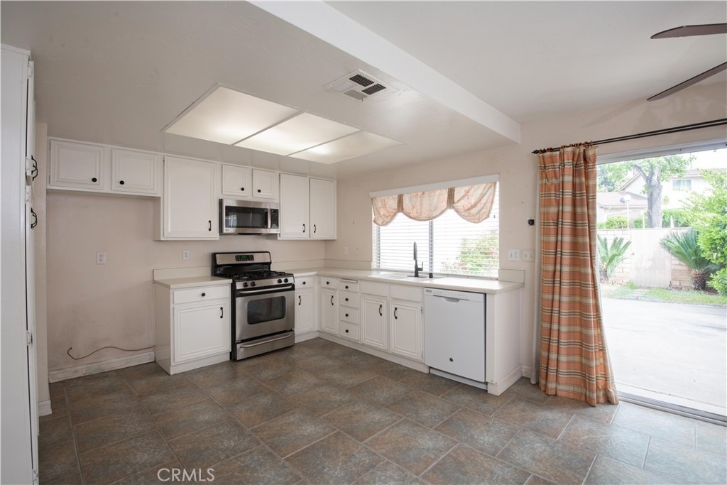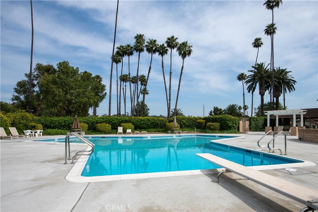 Premium location within "The Trees" community: this single-story condo is an end unit and offers a private courtyard entry plus its own fenced-gated, rear yard. There is an attached 2 car garage with direct access into the interior. The front entry opens to the formal living room with tiled flooring, vaulted ceiling, cozy fireplace and ceiling fan. The kitchen has a breakfast nook and ample cabinet space, plus free-standing stove/oven and built-in microwave and dishwasher. All bedrooms are carpeted with ceiling fans. The spacious, primary bedroom includes an en-suite bathroom with walk-in shower, large closet and a sliding glass door that opens to the back yard. Great Location with easy access to shopping, freeways and the beautiful tree lined historical Victoria Ave. Association pays water, front yard maintenance, termite and roof, front exterior maintenance. Community amenities include greenways, and recently renovated pool, spa, patio areas and the HOA offers free, on-site RV Parking based on availability. Poly HS and Gage Middle School are within walking distance