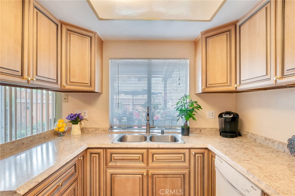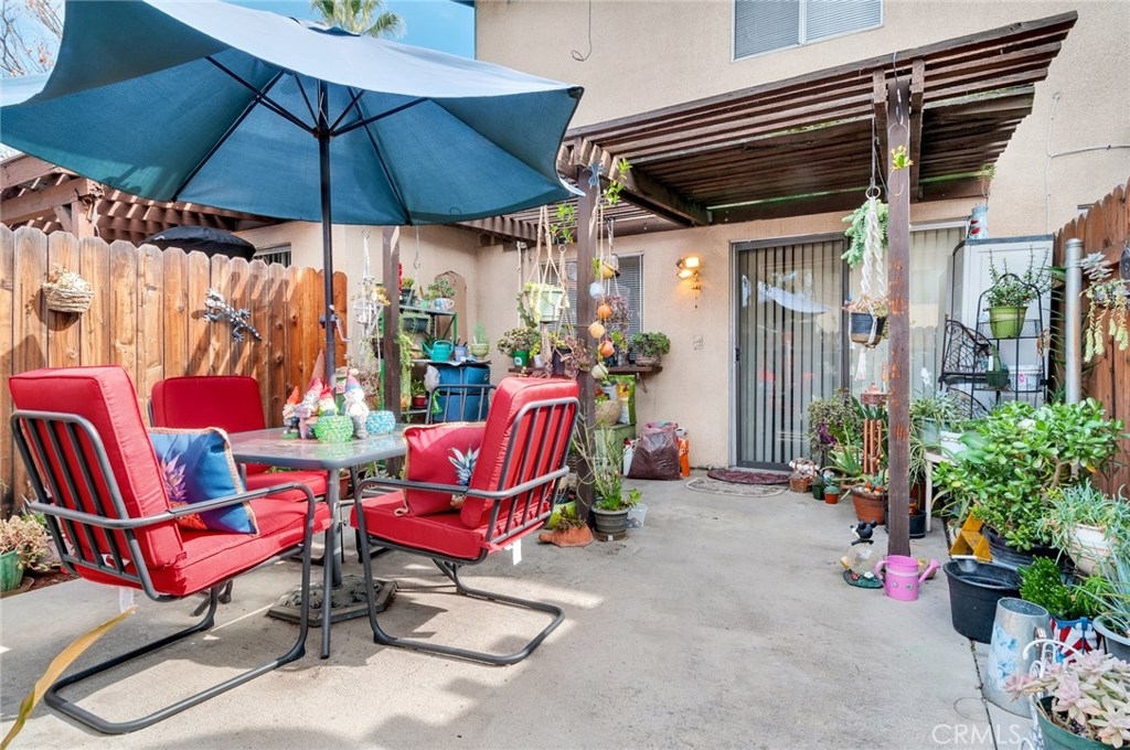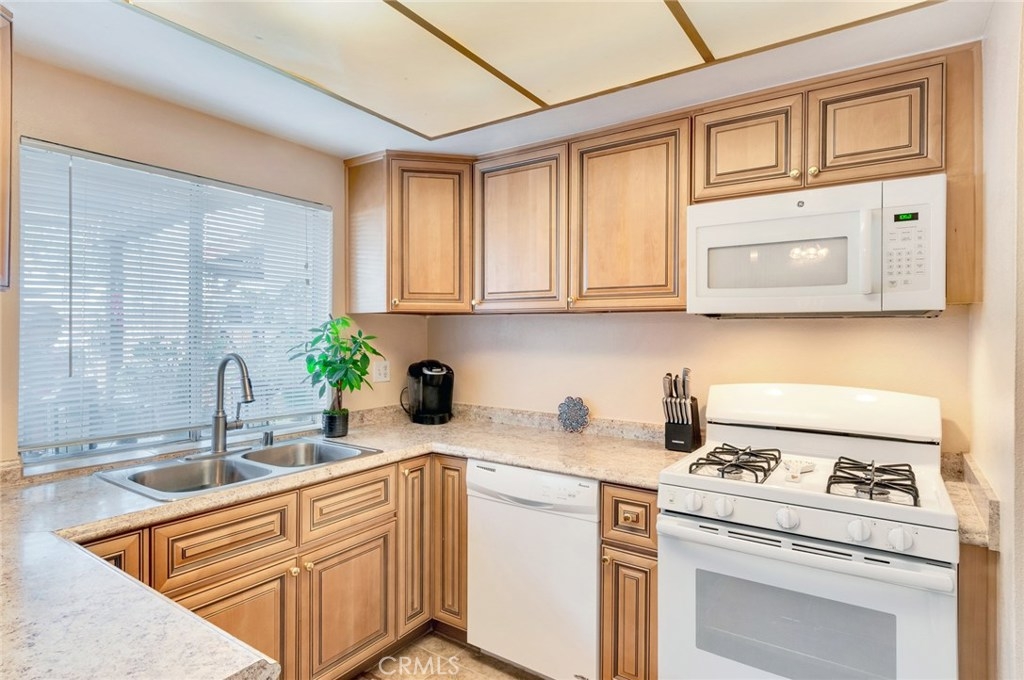 Delightful University Greens condo. Light and bright kitchen with newer upgraded custom kitchen cabinets, newer granite counter tops, newer stove, newer microwave, stackable washer/dryer included and an eating area with direct access to the enclosed patio. This lovely space is great for gardening, enjoying your morning coffee or hosting a family BBQ. The cozy living room is perfect for relaxing, reading or watching your favorite movie and includes a guest bathroom. Nice size master bedroom features double closet doors and a ceiling fan, the guest bedroom also includes a ceiling fan. A full bathroom in the hallway with a shower/tub combo. One car detached garage, community amenities include a pool, spa and clubhouse. Commuter friendly location, won't last long. Schedule your showing today!