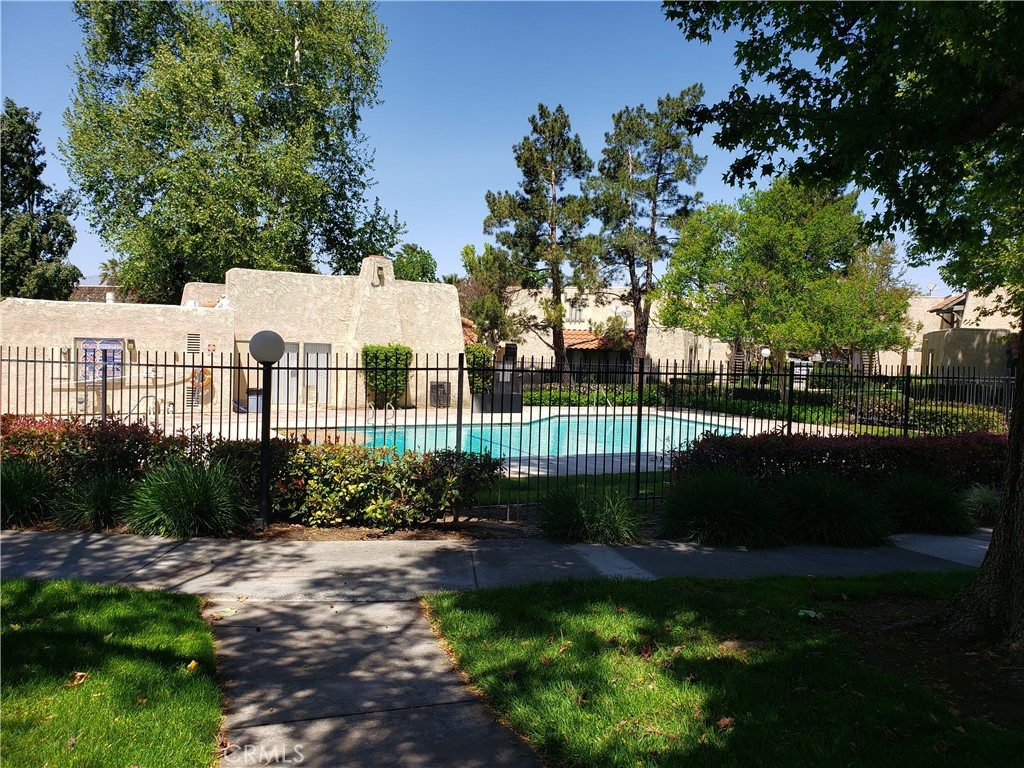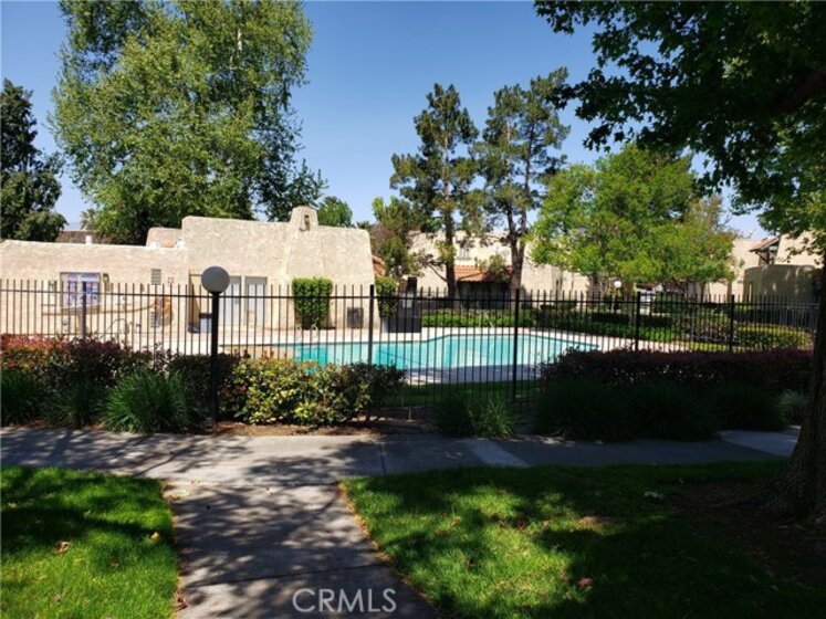 Gated Community. Two story townhouse with open floor plan. Two bedrooms with new laminate flooring. Living room with wood like tile, One full bathroom and a half guest bathroom, Stairs and bedrooms with new laminate flooring. Kitchen with breakfast nook and new sink and faucet. Dining area and Laundry space which includes a stacked washer and dryer in kitchen. New interior paint. New blinds througout. Newer dual pane windows and sliding door. Enclosed private backyard with sliding door access. Single car garage with remote control and one onsite parking permit. The gated community has nice landscaping, pool, spa and club house. It is located close to UCR, downtown Riverside, restaurants and freeways.