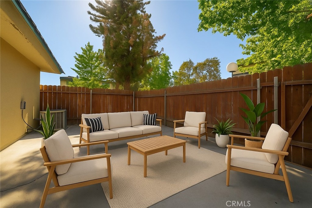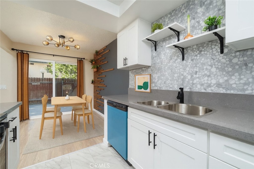 STYLISHLY UPDATED HOME IN UNIVERSITY GREENS — Just Minutes from UCR & Downtown! Step into this beautifully refreshed 3-bedroom, 2-bathroom home offering 1,119 square feet of modern comfort and thoughtful upgrades throughout. Located in the desirable University Greens community, this single-level end unit features soaring 12-foot ceilings, a large open living room, and incredible natural light from multiple exposures. The brand-new kitchen is a true showstopper, showcasing shaker-style cabinetry, stone countertops, a designer backsplash, recessed lighting, and new stainless-steel appliances—all included with the purchase. The home also features fresh interior paint, new flooring, updated light fixtures, and even new outlets and switches, creating a crisp, move-in-ready feel from top to bottom. Enjoy seamless indoor-outdoor living with a new double-pane sliding door leading to a private patio—perfect for relaxing or entertaining. Both bathrooms have been tastefully updated, and the in-home laundry area adds everyday convenience. A detached two-car garage offers plenty of parking and storage space. Community amenities include a sparkling pool, spa, and landscaped common areas, offering a resort-like setting just minutes from UC Riverside, the Mission Inn, and Downtown Riverside’s dining and shopping. Whether you’re a first-time buyer, investor, or anyone seeking a stylish, low-maintenance home in a prime Riverside location, this property delivers it all. HOA dues include water and trash!