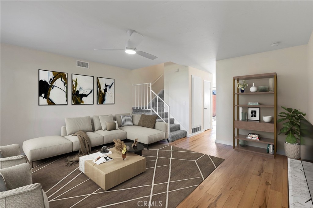 If you're searching for a move-in ready residence near the University of California, Riverside (UCR), your search ends here. This beautiful home is nestled within the University Greens Community, boasting amenities such as a clubhouse and swimming pool perfect for family events. Upon entry, you're greeted by an open floor plan, fresh paint throughout, and new carpet. The kitchen is ideally located and functional, with newer kitchen cabinets for those who love to cook. Included with the home are a refrigerator, hooded microwave, stove, dishwasher, washer, and dryer, easing your transition into this new space. Both the primary and additional bedroom, along with a full bathroom, are situated on the second floor. The private, fenced backyard is ideal for both entertaining guests and peaceful relaxation. University Greens provides a secure environment with controlled access and covers water usage. Conveniently located near the 215 and 60 freeways, Riverside STEM Academy, UCR, Riverside Community College, Riverside Sports Complex, as well as various shopping and dining options.