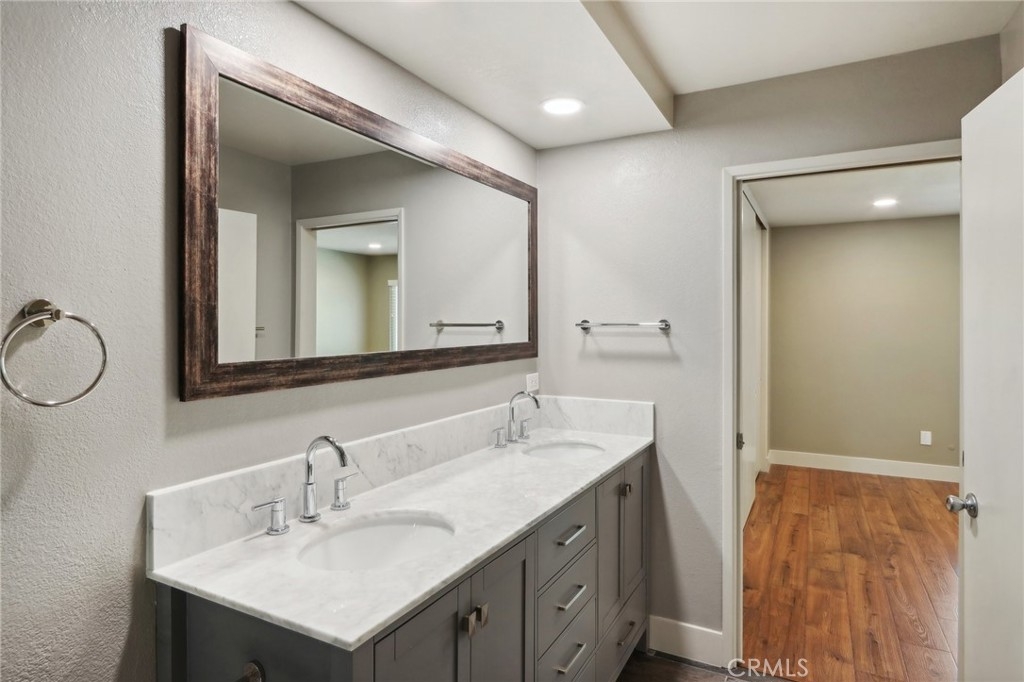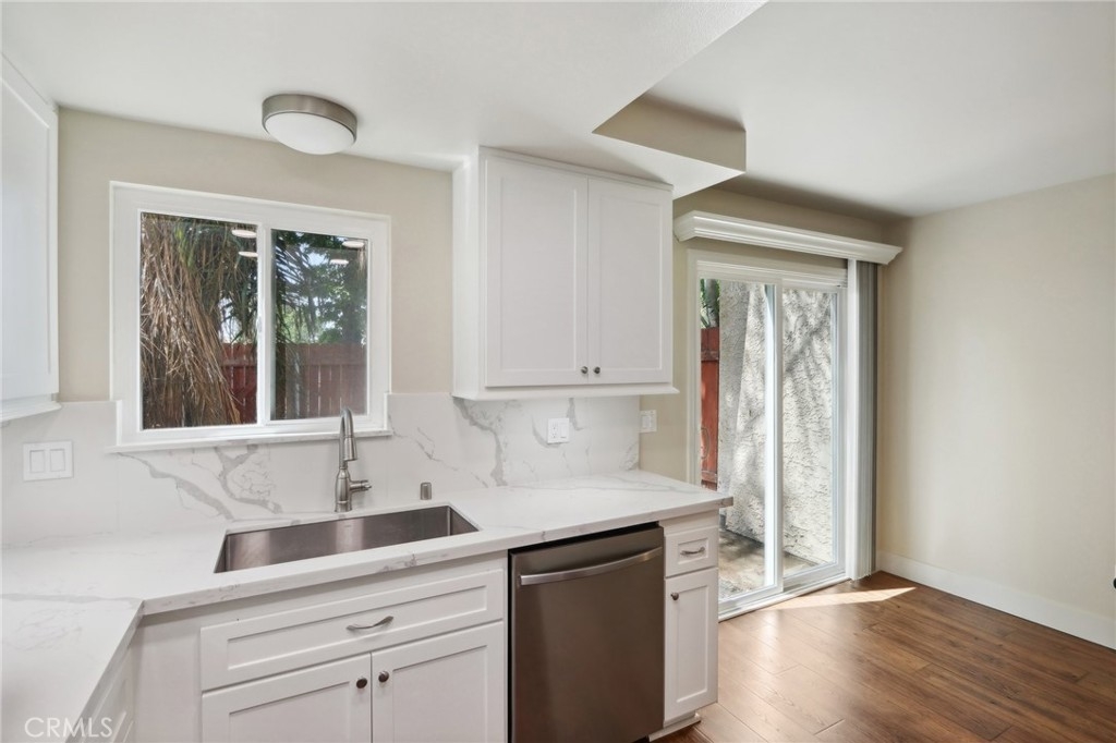 Welcome to 2565 Colgate Way in the serene gated community of University Greens. This 2-bedroom condo boasts modern elegance with wood grain LVP flooring, large baseboards, and fresh interior paint throughout. Enjoy the abundance of natural light streaming through the new dual pane vinyl windows, complemented by recessed lighting for a warm ambiance. The heart of this home lies in its fully renovated kitchen, featuring pristine white cabinets, quartz countertops, and a stylish backsplash. Equipped with stainless steel appliances and a sleek hood vent, this kitchen is a chef's dream. Unwind in your spacious living area, or step outside to your private oasis - a large fenced-in patio enveloped by lush landscaping, perfect for entertaining or quiet relaxation. University Greens offers a pool, spa, sidewalks and beautiful green space and trees. It is also freeway close and offers convenient access to a variety of amenities, including shopping centers, restaurants, parks, and less than 3 miles from UCR. Experience comfort, convenience, and contemporary living in this meticulously maintained condo. Don't miss out on the opportunity to make it yours.