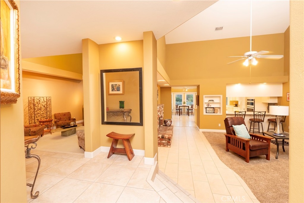 Welcome to Victoria Fairways—Riverside’s only custom-built, gated 19-home enclave, often called “Riverside’s Best Kept Secret.” Set behind private gates and positioned above the 14th and 15th fairways of the prestigious Victoria Club golf course, this rare free-standing home offers exceptional privacy, serenity, and sweeping 180° golf-course views from the moment you arrive. As you approach the home, a charming courtyard greets you—an inviting space with tremendous potential for gardening, or a tranquil seating area. Inside, the foyer opens to a striking panorama of fairways and open sky, creating a year-round vacation feel. The lifestyle at 1804 Prince Albert centers on easy indoor–outdoor living. A private wrap-around patio features multiple seating areas for dining, relaxing, or entertaining with uninterrupted views of the lush fairways and greens. From peaceful mornings with coffee to evenings spent with friends as the sun sets across the course, every moment feels effortless and elevated. The warm, inviting country kitchen offers dining with golf-course views and flows naturally into the cozy family room with a second brick fireplace. Sliding doors from both rooms open directly to the patio, making outdoor enjoyment seamless throughout the day. The spacious primary bedroom accommodates large furnishings with ease and includes a private bath that feels like a personal retreat, complete with double vanity, jetted tub, separate shower, and a second skylight that fills the room with natural light. Residents of Victoria Fairways enjoy beautifully maintained common grounds designed for comfort and community, including a covered built-in gas BBQ with dining area, a sparkling spa, two guest bathrooms, a fenced and lighted regulation tennis court, and a peaceful grove of mature fruit trees. The HOA keeps living simple by covering all water, roof and stucco maintenance, and full landscaping throughout the neighborhood. Discover the views, serenity, and exclusivity that make Victoria Fairways truly special. At 1804 Prince Albert, every day feels like resort living.