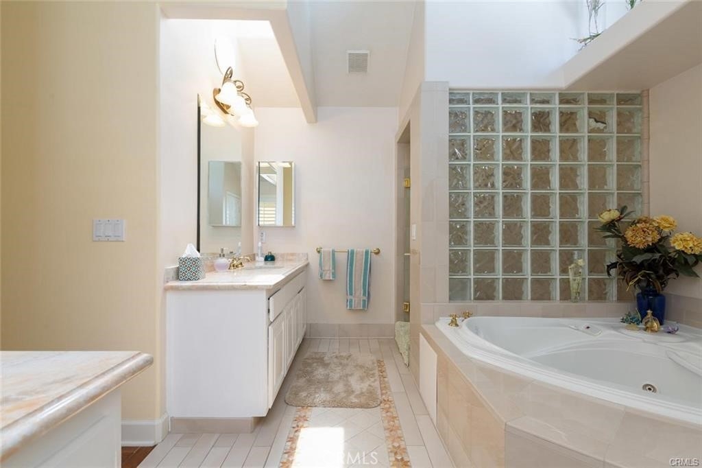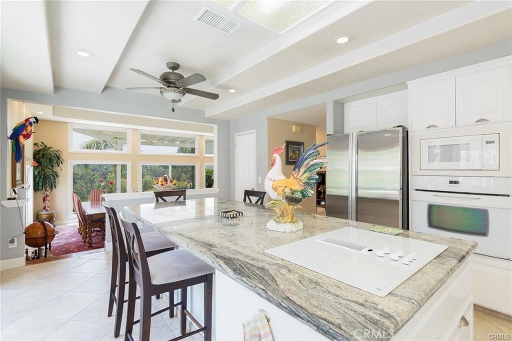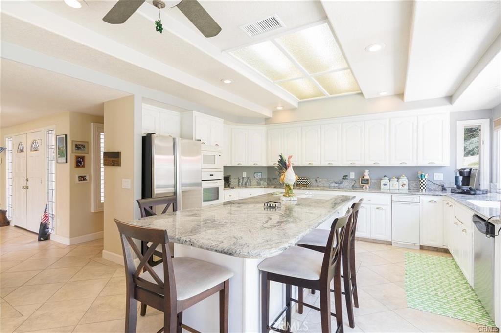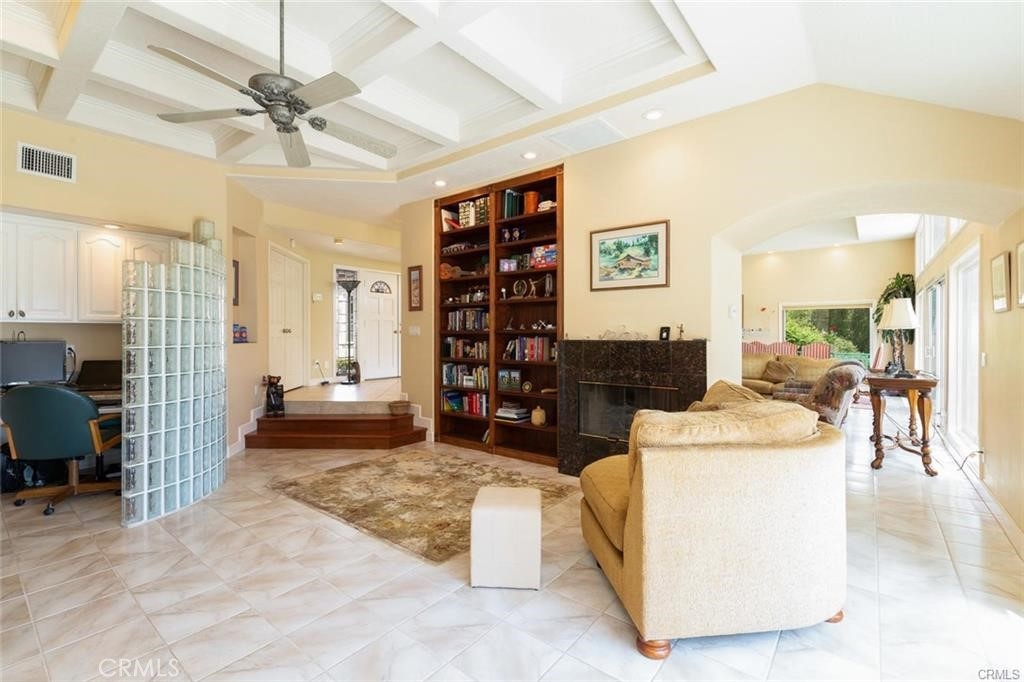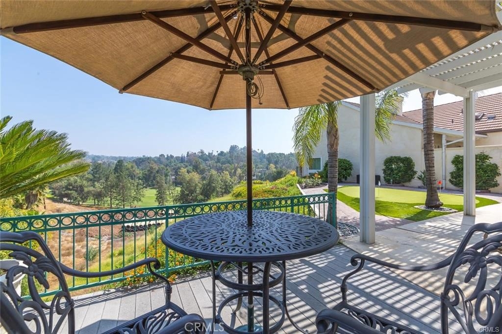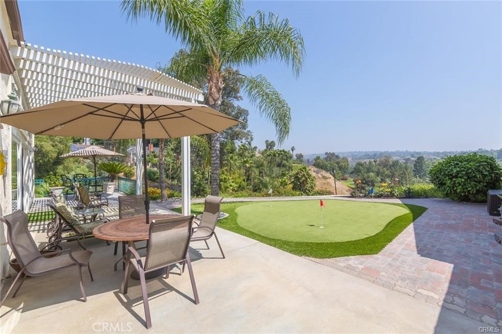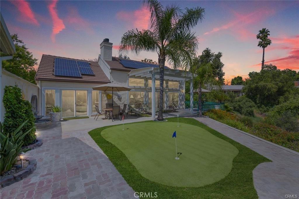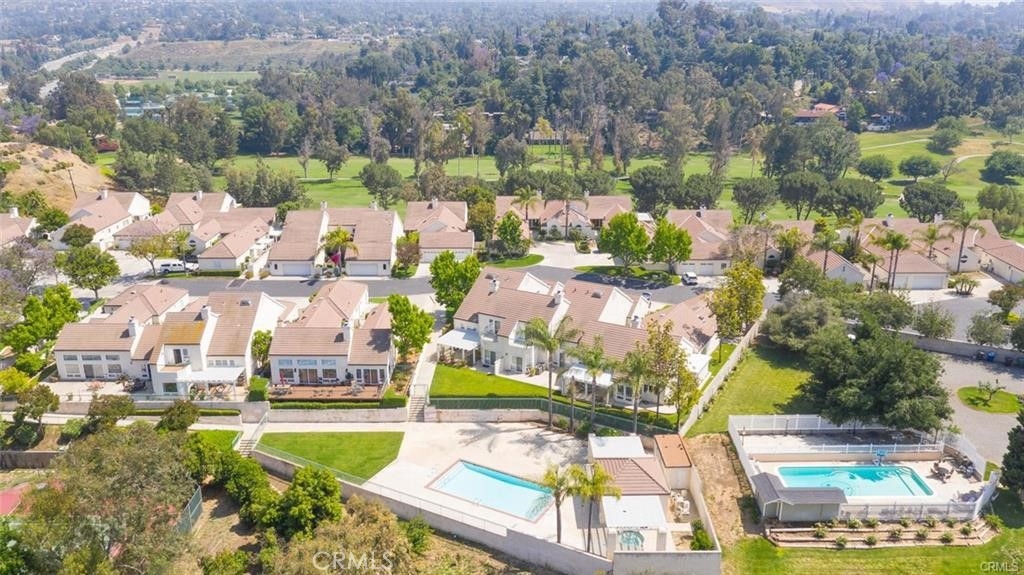 Gorgeous custom home overlooking the Victoria Country Club Golf Course. This home is an architectural masterpiece, featuring vaulted and coffered ceilings, granite and marble throughout, exquisite finishes, textures and design, encompassed by crown molding, custom wood flooring, energy efficient windows, owned solar panels, panoramic views of the Victoria Country Club Golf Course, private putting green, fountains, planters, new trex decking, and aluminum patio covering. Gated private front court yard, mature palm and citrus trees, low-no maintenance artificial turf, private end unit townhouse style with privacy yards, added parking, 3- car garage with full cabinetry and work bench, and storage shed to boot. This one of a kind unit has been re-finished with only the best, very spacious open floor plan, high ceilings, huge granite kitchen island, walk-in pantry, with plentiful cabinet and counter space. Master suite features a jacuzzi tub, dual vanities, walk in custom shower, glass brick work, private commode, double walk in closets, and a custom tropical ceiling fan. The large voluminous living dining area features wrap around views, a custom entertainment center, and a dual fire place to the office/den area. The office/den is private yet open with a sliding glass door facing the golf course, with glass brickwork and granite, as well as custom built in cabinetry. HOA includes water, landscape maintenance, exterior unit insurance, swimming pool, hot tub, covered BBQ area, bathrooms, tennis/basketball court, citrus/avocado orchard, full enclosed and gated entry for owners. HVAC system is upgraded to dual zone system with new duct work. The solar offsets the energy costs. A true hidden gem in Riverside.