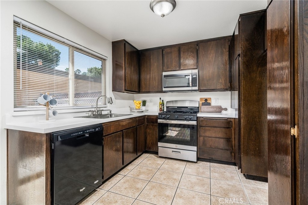 End unit! Adorable 2 bedroom, 1 and 1/2 bath townhome conveniently located near the 91 Fwy, the Galleria with shopping and excellent restaurants. This home features neutral designer paint throughout, tile floors downstairs, semi open floorplan, ample windows letting in all the natural light and much, much more. Beautiful espresso color kitchen cabinets, opening up to the dining area with a sliding glass door in between, perfect for entertaining or just hanging out on your private patio. Just add your own touches, such as potted plants, cute patio furniture, so many possibilities for this space. The patio leads to the Two car garage. Amenities include: beautiful landscaping, community grass areas, walking areas, a playground, sparking pool and clubhouse. Make this great home yours today!!