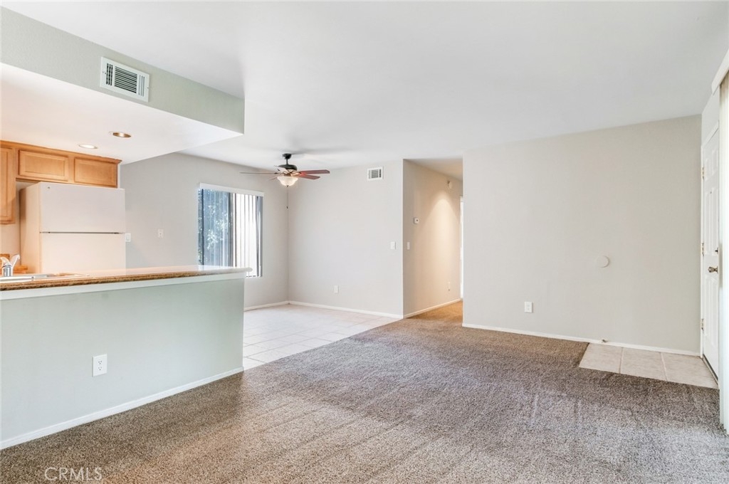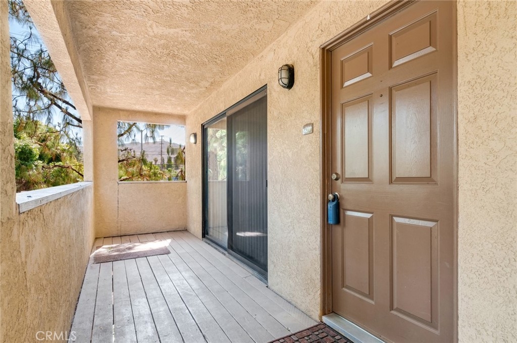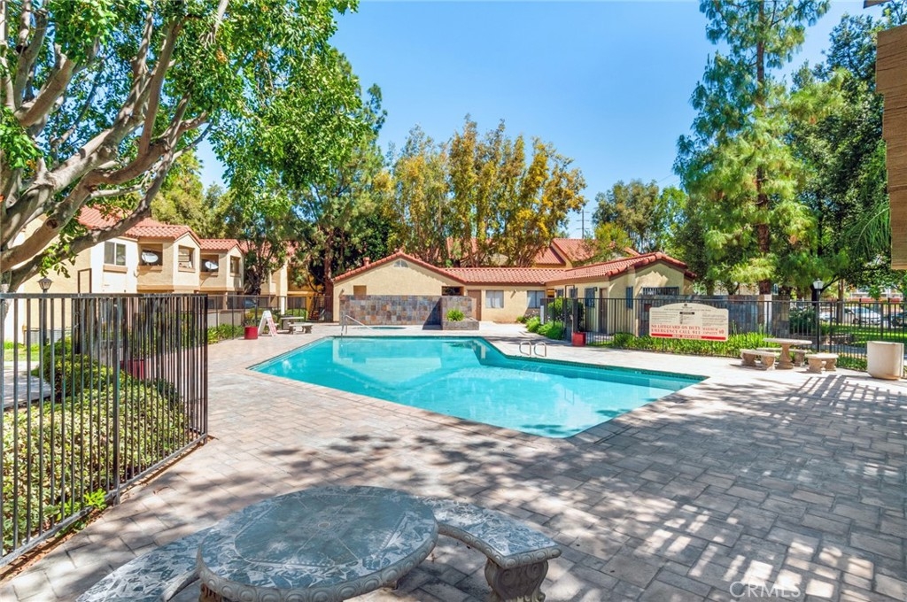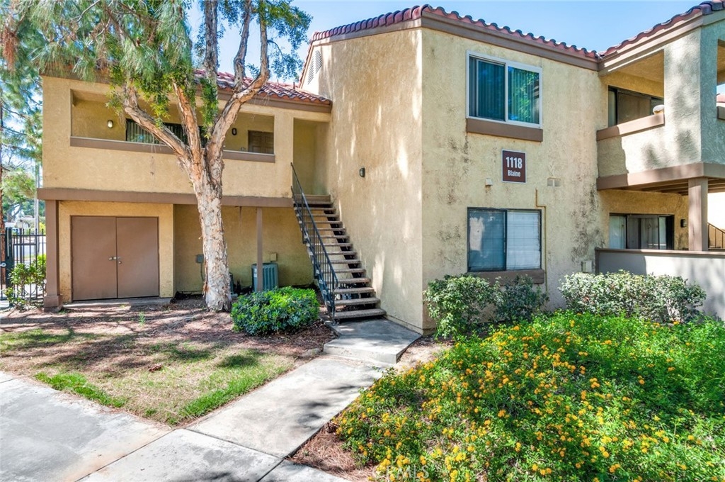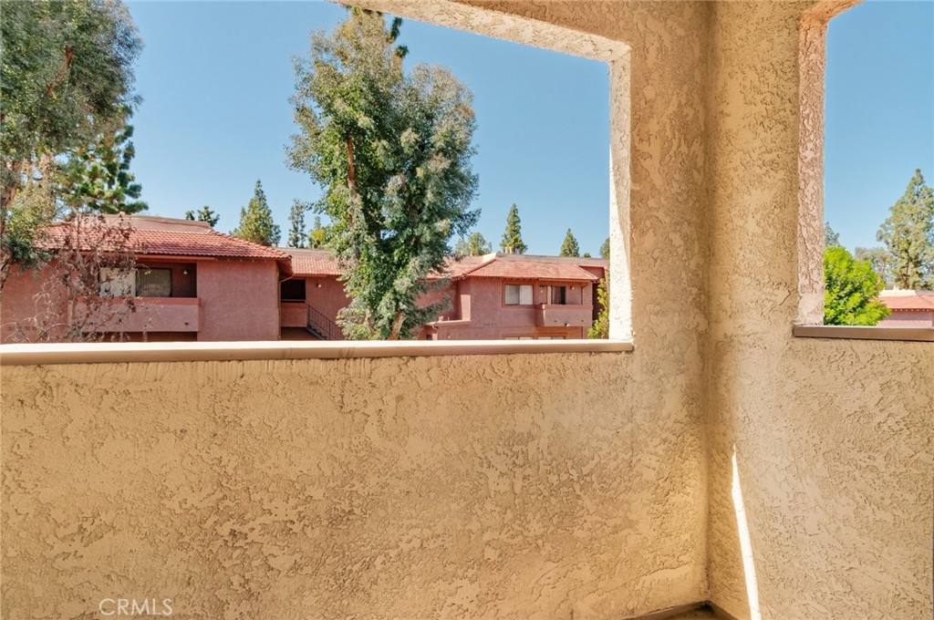 The perfect starter home or investment property! This condominium is located in the gated Woodlands community near UC Riverside and just a short drive to Downtown where you'll find restaurants and entertainment. This end-unit, 2 bed 1 bath condo has a private staircase entrance leading you to a spacious front patio. Entering the unit you'll be greeted by the living room that opens up into the kitchen/dining area. Kitchen with tile flooring includes refrigerator, gas stove/oven and attached microwave. Living room, hallway, and bedrooms all have carpet. The hallway leads you to the first bedroom to your left and bathroom to your right. The bedroom at the end of the hall leads to a second private balcony. Garage below unit and parking #404. Great location, this property won't last long!