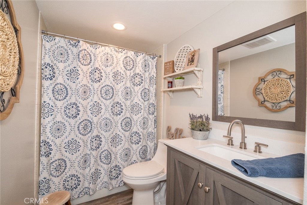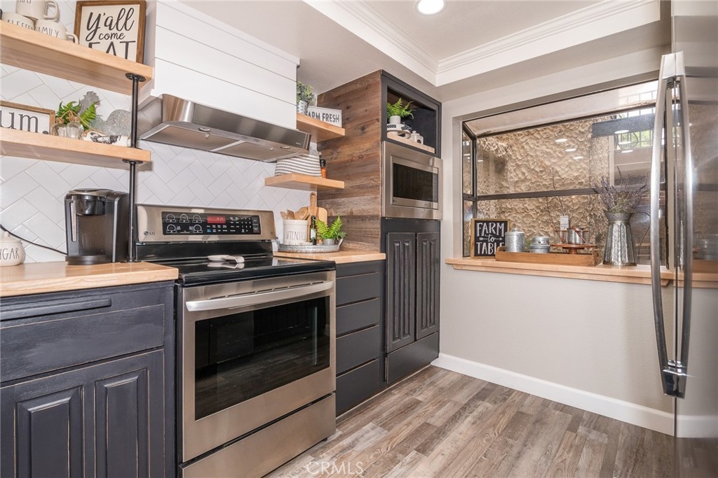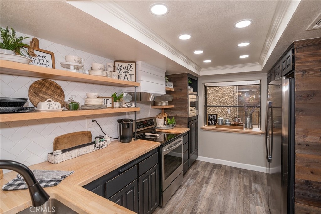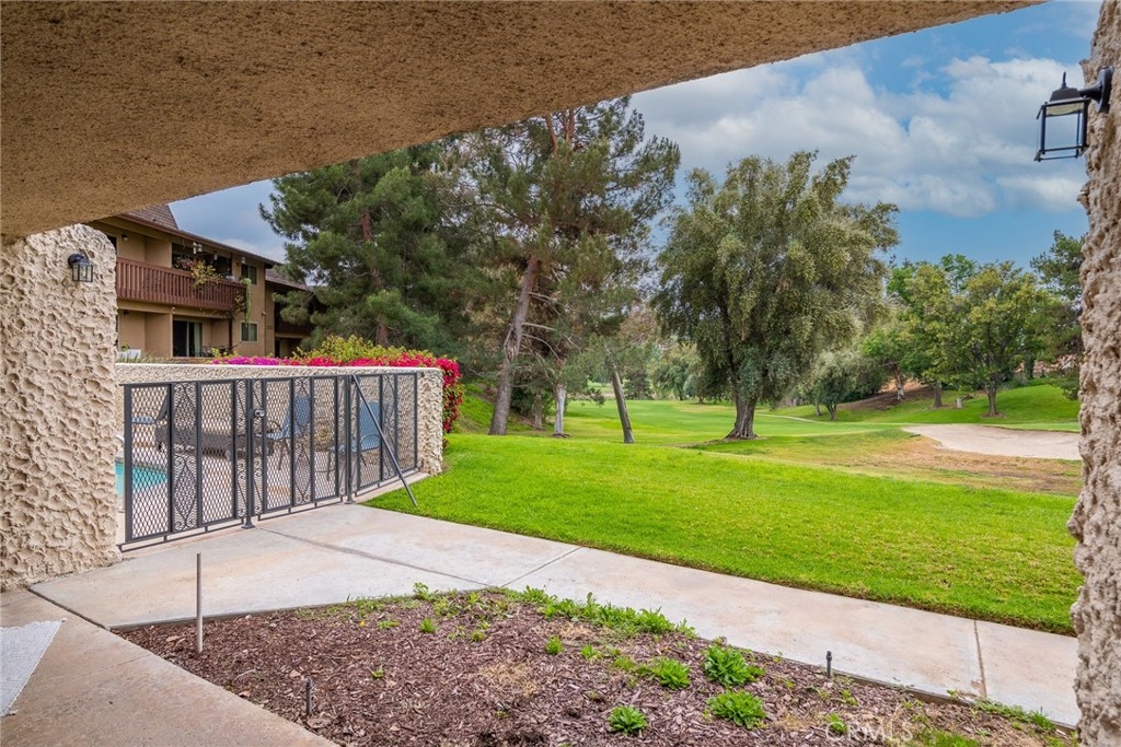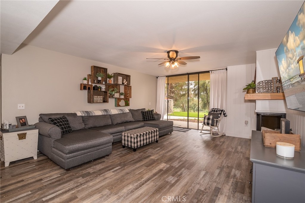 ***ON THE GOLF COURSE*** Located at the 5th hole green. Embrace the relaxed and enjoyable Southern California resort-like lifestyle in this GORGEOUS AND BEAUTIFULLY UPDATED THROUGHOUT, two bedroom, two bath, approximately 1700 ft.² GROUND FLOOR Townhome. New plank flooring throughout. Updated fireplace, Custom shiplap and impressive designer touches are EVERYWHERE! Remodeled kitchen with tile backsplash, butcher block counters, floating shelves. soft pull drawer closing. Laundry room. Large Master Suite with walk in closet. This 12 unit quiet and safe Community is GATED. Each unit has an oversized 2 car garage with high ceilings, ideal space for installing storage. The unit is located on the end, and conveniently next to the gated pool.