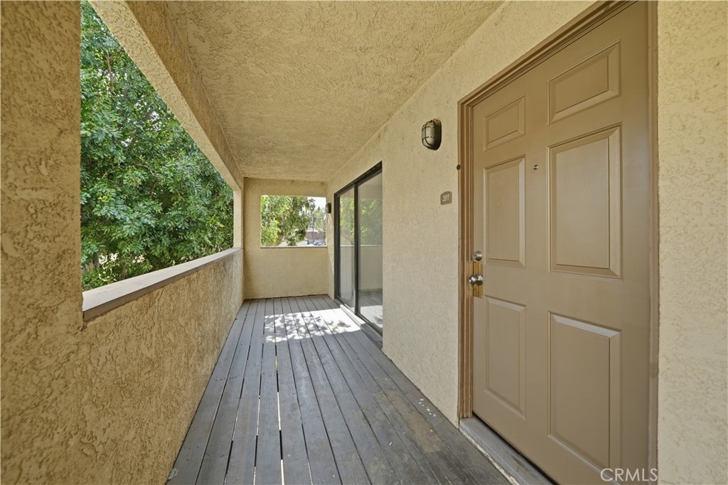 Welcome to The Woodlands, a gated community walking distance to UCR. This beautifully upgraded carriage style condominium is accessed via a private staircase & offers an end unit location with no neighbors above or below, providing a rare sense of privacy. An ideal opportunity for buyers, college students, or UCR parents looking for a convenient & well positioned home near campus. The location is a standout for those who attend or work at UCR, offering a balance of everyday convenience & classic Riverside character. Being minutes from campus allows for easy routines, short commutes & the flexibility to walk, bike, or take a quick drive to classes or work, giving residents more time to enjoy life outside of campus. A few miles from Downtown Riverside adds another layer of appeal with its historic homes, iconic architecture & cultural landmarks. The Mission Inn area serves as the heart of the city, featuring restaurants, local shops, museums, events & the popular Food Lab, creating a vibrant social & dining scene that residents can enjoy without a long commute. This blend of historic charm & modern amenities makes Riverside a unique place to call home. Nearby Canyon Crest provides shopping, dining, & everyday conveniences, making errands & casual dining simple & close to home. For outdoor enthusiasts, nearby trails & green spaces offer an easy way to unwind, exercise, or enjoy great year-round weather. Quick access to major freeways allows for smooth travel throughout Riverside & into surrounding areas, approximately 60 miles from Huntington and Newport Beach, Hollywood and Big Bear, making this location accessible to all of the best Southern California has to offer. This condo features central heat & air, luxury vinyl plank flooring throughout & plush carpet in the bedrooms, accompanied by 2 large sliding glass doors that bring in abundant natural light. 1 slider opens from the family room, while the primary bedroom slider leads to a private balcony. The main bedroom also includes a separate sink area for added convenience. The kitchen has been updated with newer cabinetry & granite countertops & the bathroom features a newer vanity cabinet & an upgraded shower enclosure. The unit is in great condition & is thoughtfully improved. Community amenities include a pool & spa, BBQ & picnic areas, community laundry room, landscape maintenance & trash. Parking is easy with 1 attached garage plus 1 additional assigned parking space, with guest parking available.