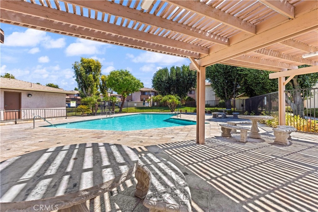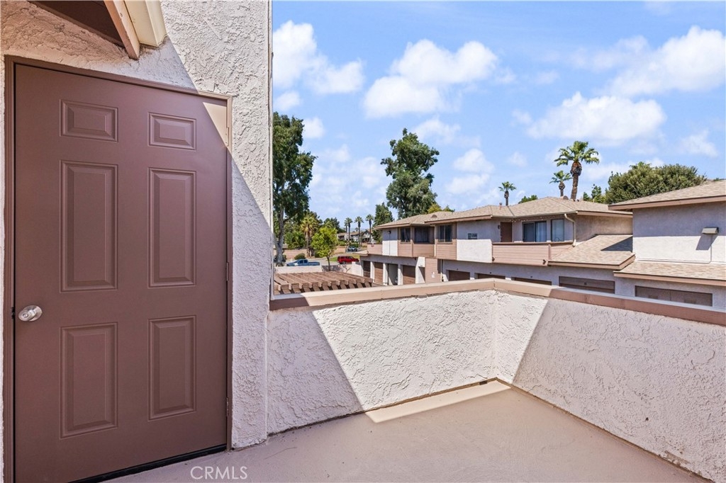 Welcome to your new home in the highly sought after gated Palmilla Community near UCR. Perfect for first-time homebuyers. This beautiful upstairs corner condo offers a bright and open floor plan and has been freshly painted. The kitchen has maple cabinets with granite counter tops, dishwasher, stove/oven, and microwave. The bathroom has been remodeled in all white cabinetry and vanity. Large master size bedroom with mirrored closets and maple linen cabinets. Large glass slider leads to private balcony to sit and relax off the living room with outdoor spacious closet for storage. The community offers a large pool, spa, and area for eating/picnics inside the pool area, nicely landscaped green belts, and manicured shade trees. HOA includes water/hot water, and trash. Do not miss out on this marvelous opportunity to own this incredible condo in this vibrant community just minutes from University of California-Riverside, shopping, restaurants, entertainment, and convenient 91/60/215 Fwy access.