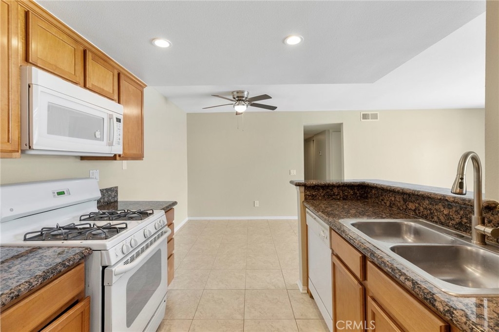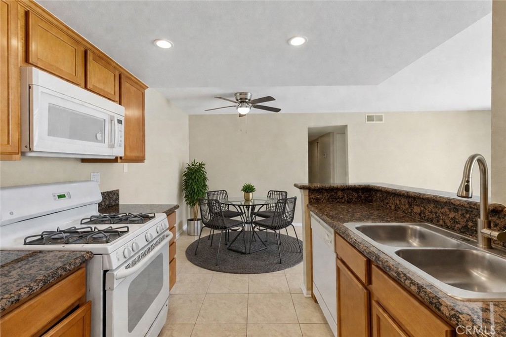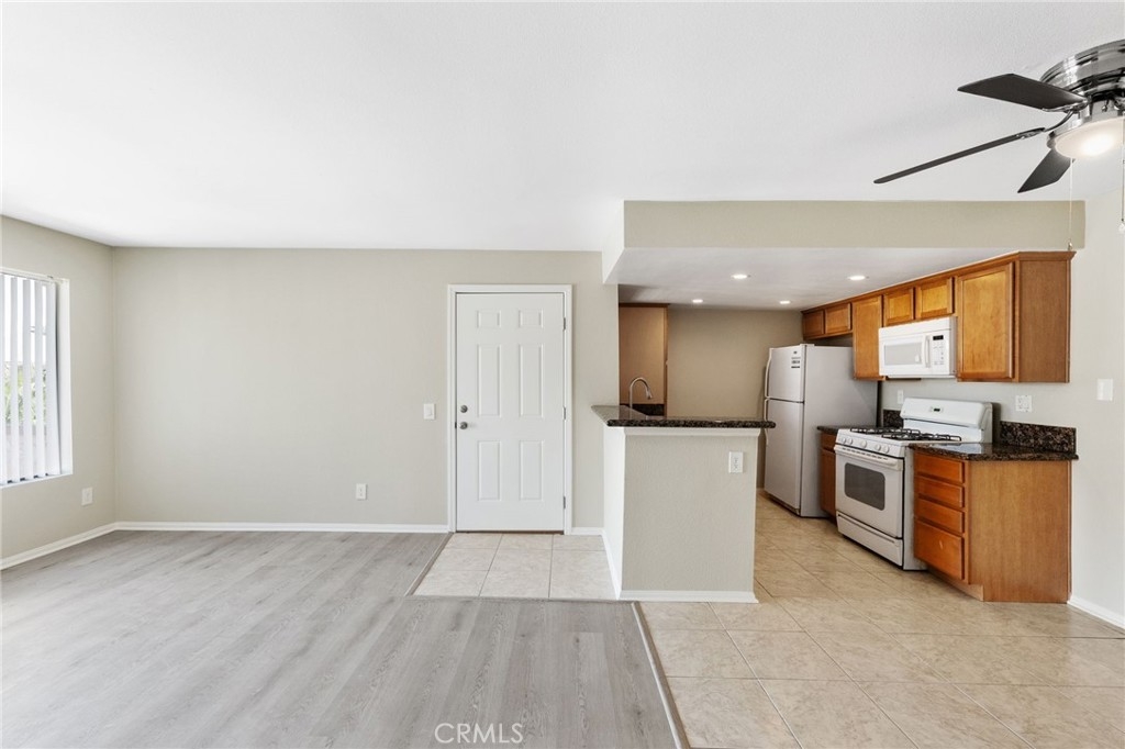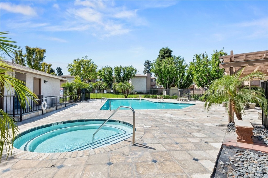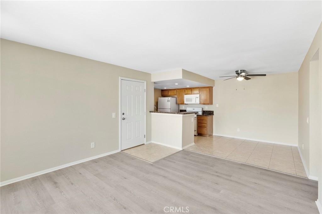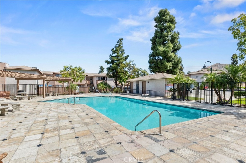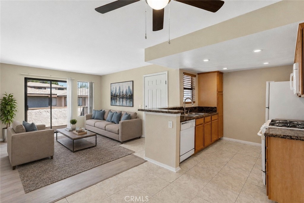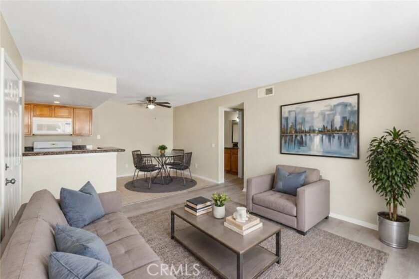 Welcome home to this beautifully updated condominium located in the desirable gated Palmilla Community in Riverside, conveniently situated just minutes from UC Riverside. This highly sought-after floor plan offers 2 bedrooms and 2 full bathrooms, providing a comfortable and functional layout ideal for first-time buyers, students, investors, or anyone looking for low-maintenance living in a prime location. Step inside and immediately notice the fresh interior paint throughout the home along with brand-new luxury vinyl plank flooring that adds a modern touch while offering durability and easy upkeep. The bright and airy living room features high ceilings and an abundance of windows that bring in plenty of natural light, creating an open and inviting atmosphere. The living space flows seamlessly into the kitchen, making it ideal for both everyday living and entertaining guests. The kitchen is equipped with granite countertops, and ample cabinetry offering both style and functionality for preparing meals at home. Both bedrooms are generously sized, and the two full bathrooms provide convenience and flexibility for residents and guests alike. Step outside to enjoy the balcony perfect for relaxing after a long day. A bonus is that the unit also includes an assigned one-car garage conveniently located beneath the home for easy access and additional storage. Residents of this gated community enjoy updated roofing throughout the complex as well as access to a sparkling pool and spa area—perfect for enjoying warm Southern California days. Conveniently located near shopping, dining, major freeways, and local amenities, this move-in ready condo offers the perfect combination of comfort, convenience, and value. Make this great home yours today!