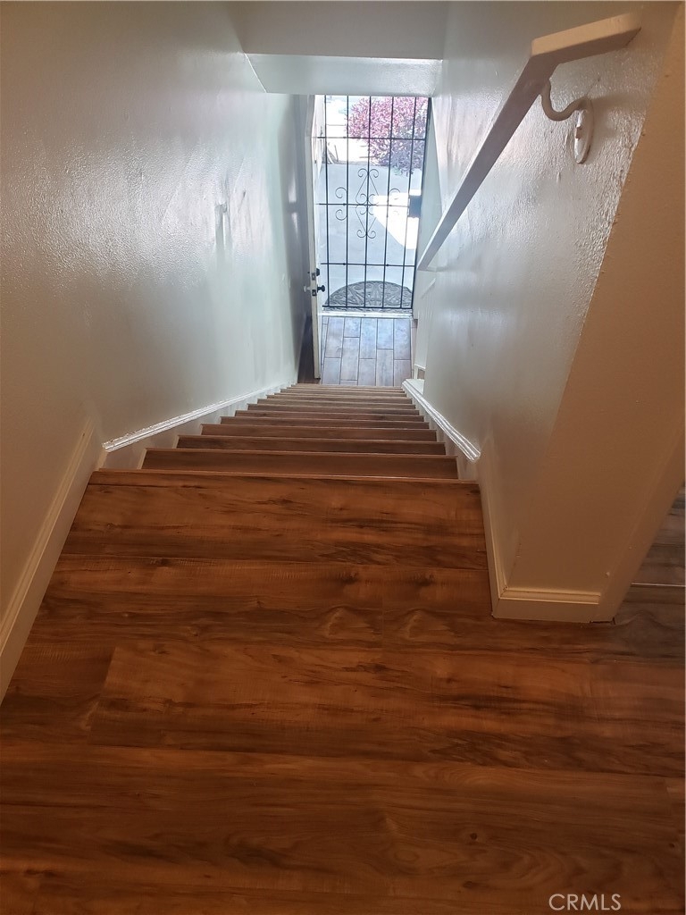 Gated Community. Two story townhouse with open floor plan. Two bedrooms with new laminate flooring. Living room with wood like tile, One full bathroom and a half guest bathroom, Stairs and bedrooms with new laminate flooring. Kitchen with breakfast nook and new sink and faucet. Dining area and Laundry space which includes a stacked washer and dryer in kitchen. New interior paint. New blinds througout. Newer dual pane windows and sliding door. Enclosed private backyard with sliding door access. Single car garage with remote control and one onsite parking permit. The gated community has nice landscaping, pool, spa and club house. It is located close to UCR, downtown Riverside, restaurants and freeways.