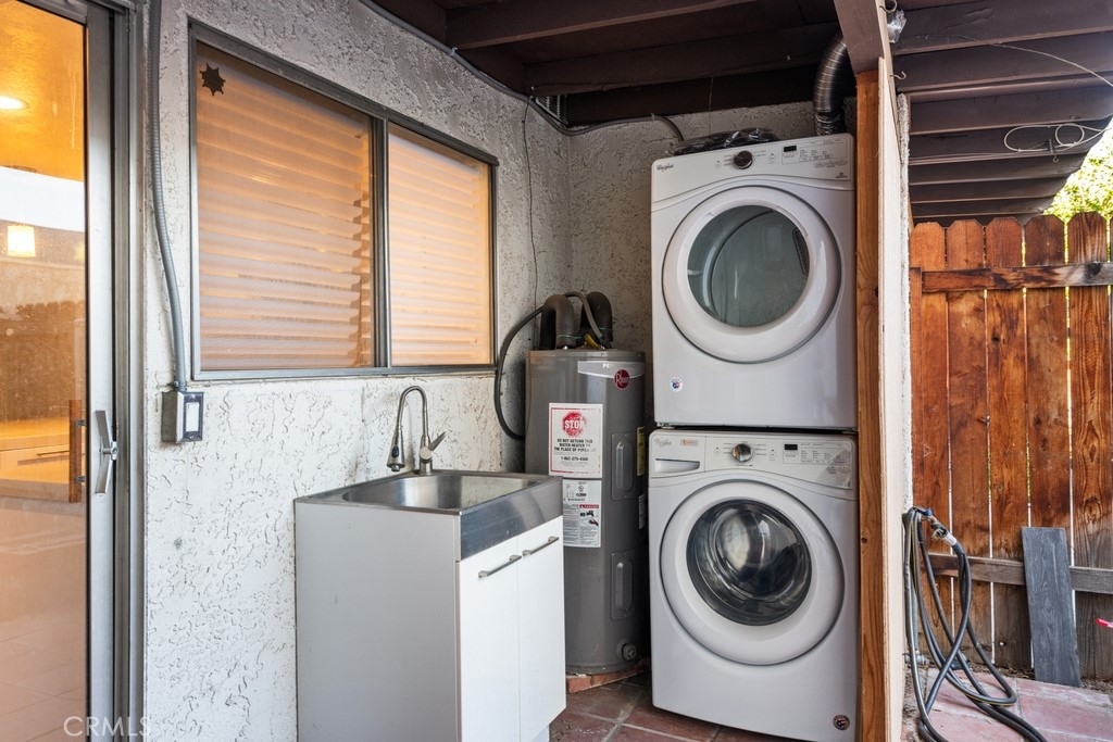 Welcome to this completely renovated condo in the highly desirable Buena Vida community, offering a fantastic investment opportunity just within a mile of UCR, local schools, restaurants, and shopping. This beautiful condo features laminate flooring throughout and an open living and dining area with a cozy brick-framed fireplace. The renovated kitchen is a showstopper, boasting quartz countertops, a waterfall peninsula with bar seating, brand-new stainless steel appliances, a sleek sink, white shaker-style cabinetry, and a stylish subway tile backsplash. Go outside to your private fenced backyard, which includes a covered tiled patio with a stackable washer and dryer, and a yard space with a brick planter—perfect for your personal touch. The backyard also offers convenient access to a one-car garage. Upstairs, you'll find two spacious bedrooms and a full bathroom with a tiled tub surround and modern vanity. A unique kitchenette, complete with a sink, cabinets, and a microwave, adds versatility. LOW HOA fees include water, trash, access to a community pool, spa, and recreation room. This condo is truly turn-key and ready for its new owner!