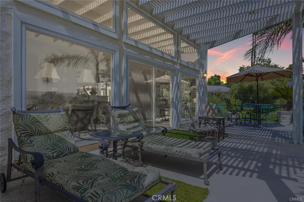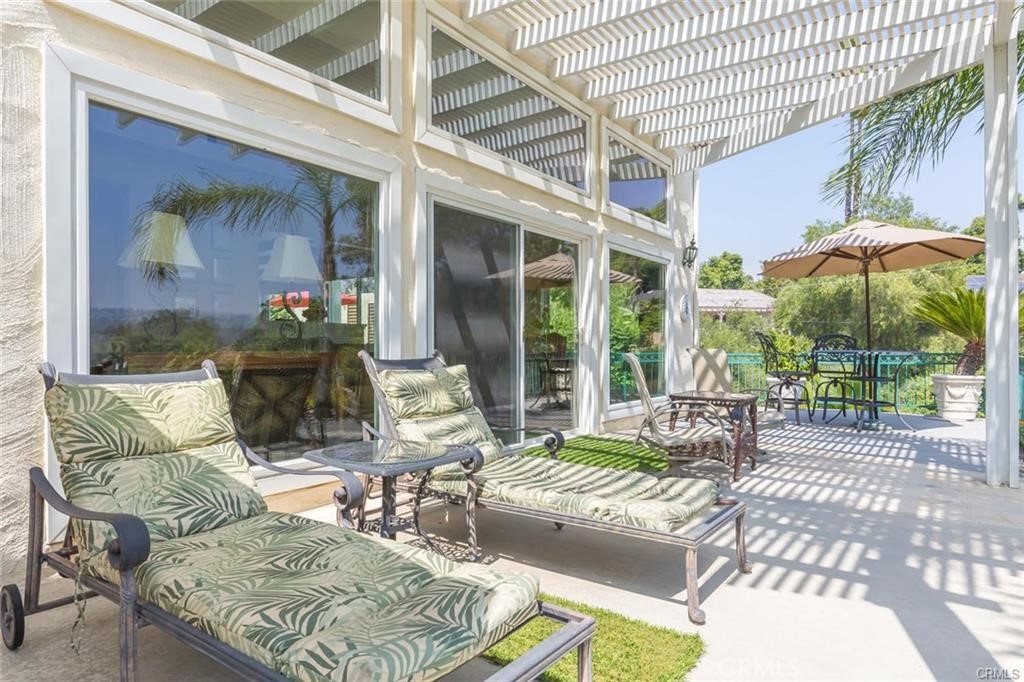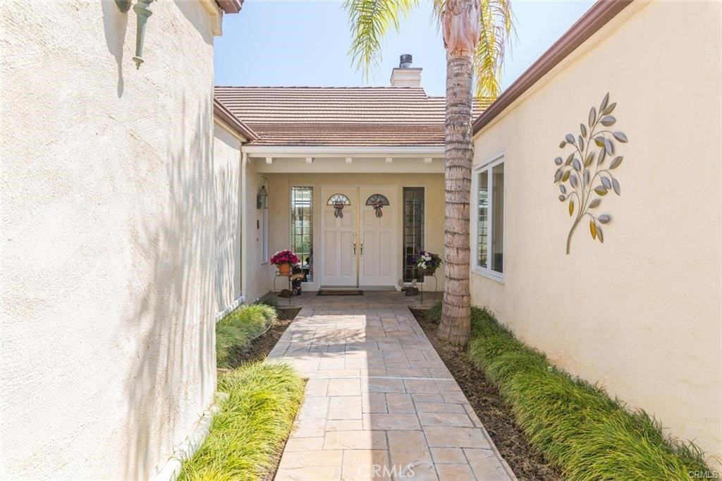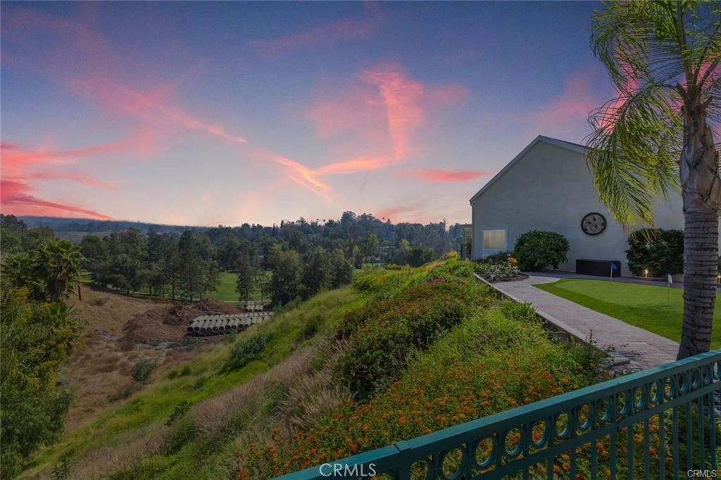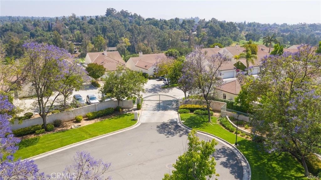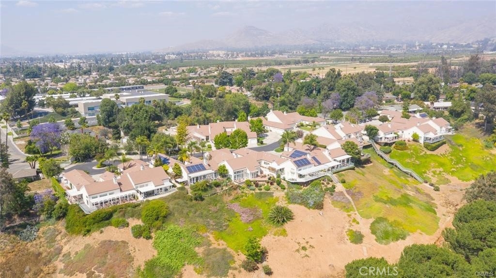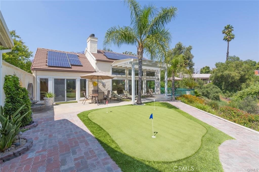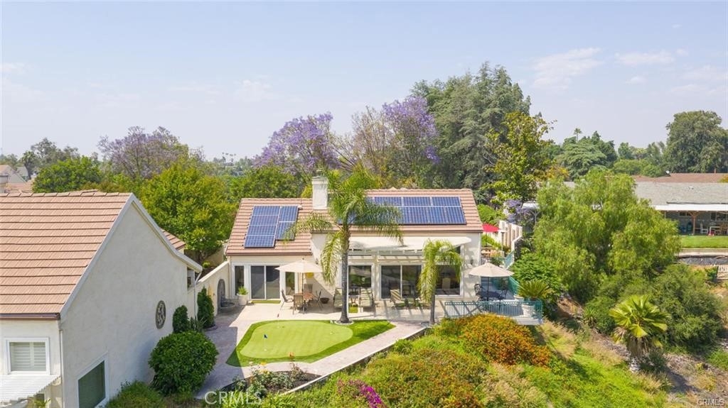 Gorgeous custom home overlooking the Victoria Country Club Golf Course. This home is an architectural masterpiece, featuring vaulted and coffered ceilings, granite and marble throughout, exquisite finishes, textures and design, encompassed by crown molding, custom wood flooring, energy efficient windows, owned solar panels, panoramic views of the Victoria Country Club Golf Course, private putting green, fountains, planters, new trex decking, and aluminum patio covering. Gated private front court yard, mature palm and citrus trees, low-no maintenance artificial turf, private end unit townhouse style with privacy yards, added parking, 3- car garage with full cabinetry and work bench, and storage shed to boot. This one of a kind unit has been re-finished with only the best, very spacious open floor plan, high ceilings, huge granite kitchen island, walk-in pantry, with plentiful cabinet and counter space. Master suite features a jacuzzi tub, dual vanities, walk in custom shower, glass brick work, private commode, double walk in closets, and a custom tropical ceiling fan. The large voluminous living dining area features wrap around views, a custom entertainment center, and a dual fire place to the office/den area. The office/den is private yet open with a sliding glass door facing the golf course, with glass brickwork and granite, as well as custom built in cabinetry. HOA includes water, landscape maintenance, exterior unit insurance, swimming pool, hot tub, covered BBQ area, bathrooms, tennis/basketball court, citrus/avocado orchard, full enclosed and gated entry for owners. HVAC system is upgraded to dual zone system with new duct work. The solar offsets the energy costs. A true hidden gem in Riverside.