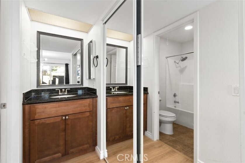 Welcome to Mission Villas, a gated community located in the highly desirable Mission Grove neighborhood of Riverside. This charming single-story, first-floor condominium offers an ideal blend of comfort, convenience, and resort-style living. Featuring 2 bedrooms and 2 bathrooms, this well-designed home welcomes you with a bright, open floor plan. The kitchen is thoughtfully designed with granite countertops, ample cabinetry, and a functional layout that opens to the main living area, allowing for easy interaction and natural light throughout. It's open to living space via a bar top and the open concept design. The spacious living room is anchored by a sliding glass door that lead to a private patio, offering a peaceful outdoor retreat ideal for morning coffee, evening relaxation, or container gardening. The primary suite provides a comfortable and private sanctuary, complete with mirrored closet doors, a second closet offering generous storage, and an ensuite bathroom featuring a separate vanity area for added functionality. The primary suite also has a sliding glass door to your private patio. A well-sized secondary bedroom and full bathroom offer flexibility for guests, a home office, or additional living needs. Mission Villas is known for its impressive community amenities, including a sparkling pool and spa, clubhouse, fitness room, BBQ and picnic areas, and convenient on-site laundry facilities, all set within beautifully maintained grounds. The gated setting adds an extra layer of privacy enhancing the overall lifestyle experience. Ideally situated in Mission Grove, this home is just minutes from shopping centers, dining, parks, schools, and major commuter routes including the 215 freeway, making daily errands and travel a breeze.