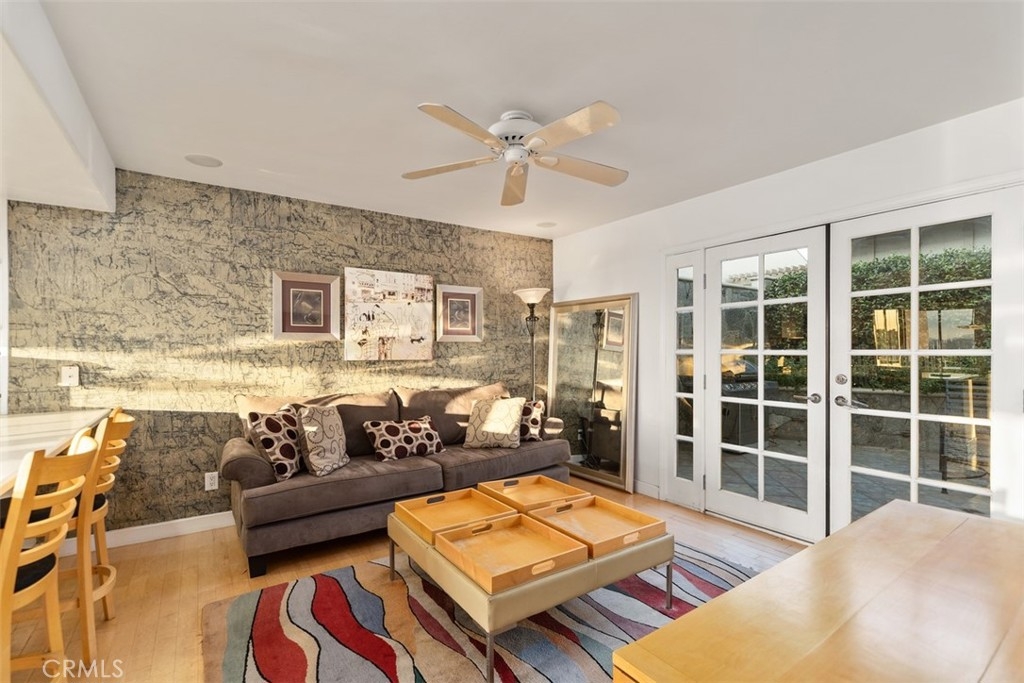 Panoramic vistas from this condominium nestled on top of Sunset Ridge in Riverside’s Canyon Crest neighborhood. Built in 1972, the sought after private Sunset Ridge community is a gated enclave of just 60 residences with detached 2 car garages, interior courtyards, and unbelievable views of the city lights, San Gabriel Mountains, including Mt. Baldy, Mount Rubidoux and downtown Riverside. The wrought iron entry gate leads to the interior courtyard with tile flooring and slate accents and towering queen palms. The modern glass entry door opens to the large living room with 9 foot ceilings, wood floors, and gas fireplace. The formal dining room sits just above the living room the the two areas are connected by 14 feet (8ft, 6ft) of sliding glass doors with dramatic views below. The U-shaped kitchen opens to the separate family room with lots of counter space, cabinets for storage and double ovens with a gas cooktop. The family room has dual French doors which lead out to the front courtyard and provides for both privacy and abundant natural light. Up the stairs the primary suite is the highlight with over 315 square feet of living space, a walk-in closet, dual vanity and walk-in shower. Two sets of dual paned sliding doors, together measuring 14 feet, provide beautiful views to enjoy morning coffee or an evening glass of wine on the balcony. There are two additional guest bedrooms (14ft x 11ft and 13.5 x 10ft +/-) with mirrored closets, ceiling fan and built-ins. The upstairs guest bathroom has a tiled shower in tub and tiled vanity. The 500+/1 square foot back patio is the quintessential space to entertain friends and family or just have a quiet dinner and enjoy the unparalleled Riverside views.