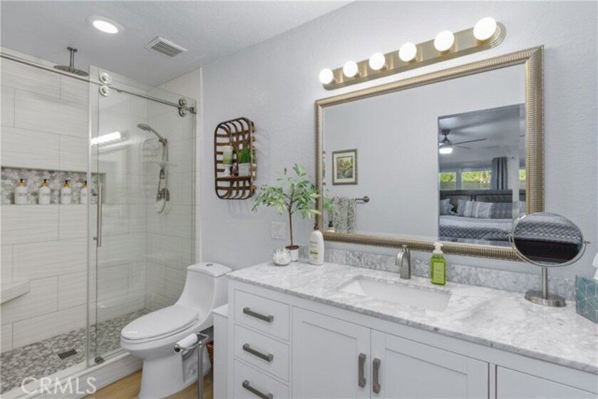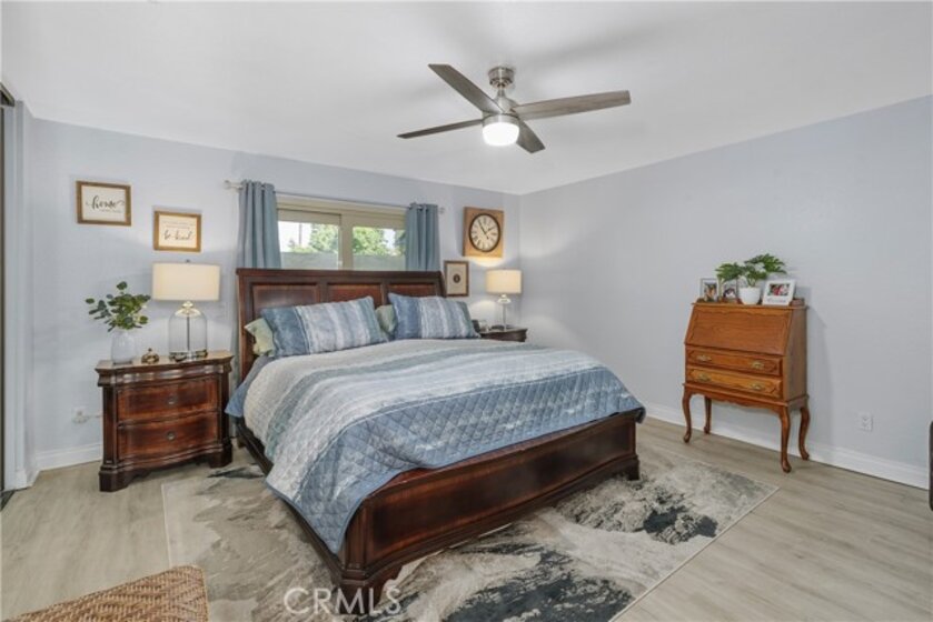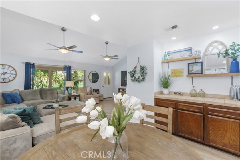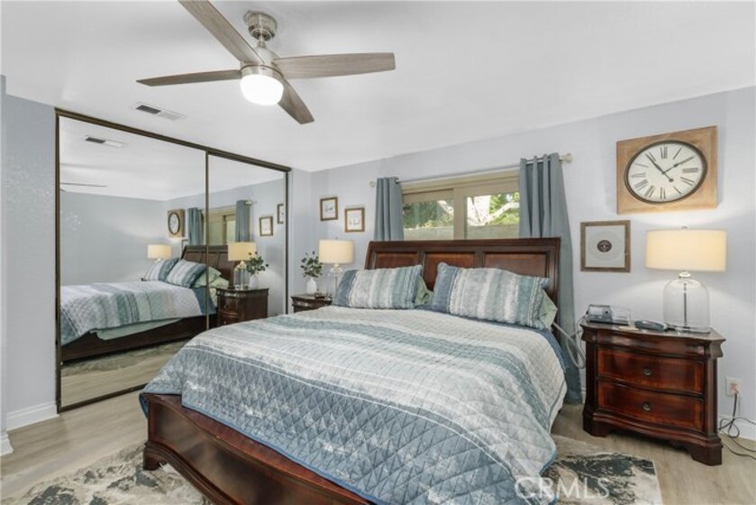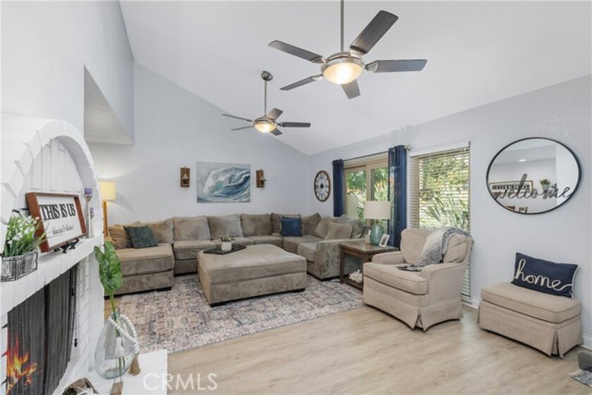 You'll love this beautifully maintained rare single-story condo in the gated Park Granada community! Offering 1600 sq ft. with 2 spacious bedrooms, 2 bathrooms with Primary bath tastefully remodeled, Large kitchen with center island, Stainless Steel appliances, farm sink and lots of cabinets space. Living Room includes 2 ceiling fans with vaulted ceilings, convenient Laundry room, fireplace and 3 private patios with sliders. View of lush green space and pool outside front slider. All Blinds and drapes included. Energy-efficient upgrades include dual pane windows, all new ceilings fans in every room, upgraded HVAC, new paneled interior doors, 40-gallon water heater, newer roof, and new flooring and paint. Tons of storage in the kitchen, hallway and bedrooms. Detached 2-car garage with ample storage just steps away. Enjoy 3 well maintained swimming pools, 3 spas, and lush greenbelts with full trees and walking paths. Conveniently located near the 91, 60 and 215 freeways, Downtown Riverside, the Riverside Plaza, shopping, dining and scenic Victoria Avenue trails. You don't want to miss this gem!