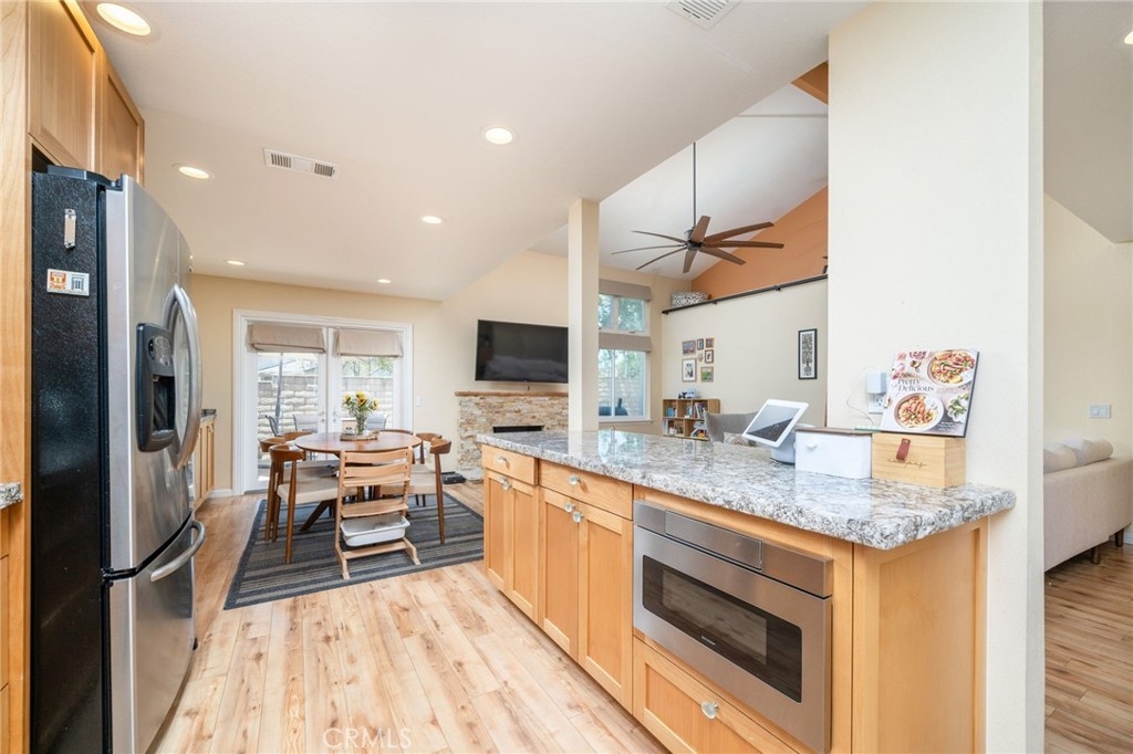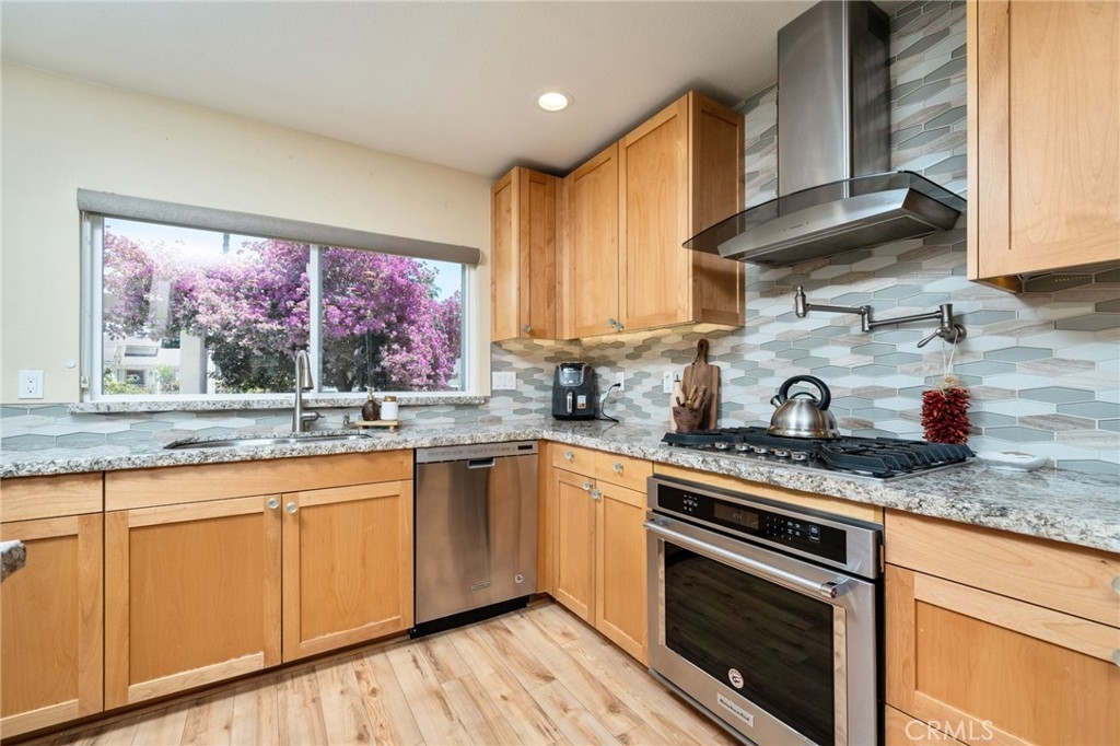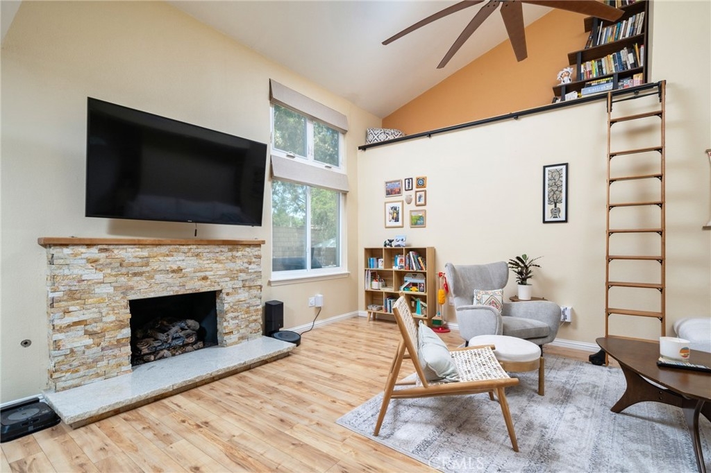 Welcome to 2627 Mangrove Way, a beautifully upgraded single-story end-unit located in the highly desirable Hawarden Hills/Victoria Greenbelt area of Riverside, within the sought-after community of "The Trees." From top to bottom, this home has been thoughtfully updated with exceptional quality and design, making it feel like new. Step inside and fall in love with the soaring vaulted ceilings, stunning LAMB WOOD flooring, and a BIG living room featuring a stone-accented fireplace and custom wood mantle—perfect for entertaining or relaxing in comfort. The gourmet kitchen is a standout with its chiseled-edge granite countertops, custom Alderwood cabinetry, soft-close drawers, built- in stainless steel appliances, and a pantry with pull-out shelving. Every detail was carefully selected to offer both style and functionality. The spacious layout includes a great room connecting the kitchen, dining area and large living room, a great space to entertain. A fun feature in the living room is a reading nook located above the living space with access by a custom ladder- a great space to read or take a nap. The primary suite offers a tranquil retreat with 2 custom sliding barn doors enclosing the two closets with efficient organizers, an oversized wood ceiling fan and a spa-like en-suite bathroom. There are two luxurious bathrooms that showcase granite countertops, designer tile work, walk in showers with glass doors and elegant finishes you’ll truly appreciate. Enjoy energy-efficient vinyl windows, upgraded ceiling fans, and recessed lighting throughout. The inviting front porch is perfect for evening chats with neighbors, while the large, private rear patio is ideal for BBQs, morning coffee, or peaceful evenings outdoors. A gate from the patio leads directly to the lush greenbelt. The finished two-car attached garage is the ultimate man cave—complete with built-in cabinetry, epoxy floors, extra storage, laundry area, brand new water heater and room to watch the big game in style. The community offers a sparkling pool, spa, comment RV parking and a spacious event area—perfect for family gatherings just steps from your door. Located within walking distance to top-rated schools including Poly High School and Gage Middle School, this home truly has it all. Don’t miss your opportunity to own a turnkey home in one of Riverside’s premier neighborhoods.