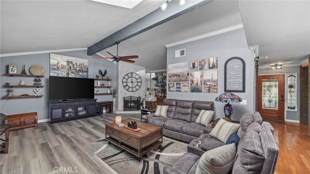 Discover one of Riverside's prime living locations....the sought-after Victoria Neighborhood, featuring the Palm Terrace Townhome Community. This beautifully remodeled Condo has 2,030 square feet of living space and features 2 Bedrooms 2-1/2 baths and a office or reading room. Remodeled kitchen with granite counter tops, pull out cabinet shelves with lots of cabinets and a bright sunny separate formal dining and family room with vaulted beamed ceilings, marble covered fireplace, wet bar for entertaining your guests. Bask in the three completely remodeled bathrooms with a new large sit-down shower and a free-standing soaking tub. Enjoy the center atrium and skylight in Family Room that adds sunny natural beauty indoors creating a serene ambiance that complements the home’s overall allure. Newly upgraded carpet and wood flooring throughout, new doors, crown molding and baseboards. A large, attached patio on the side of condo and an additional private patio in front for small family gatherings. Condo is situated in a prime location across from the gated pool area and guest parking. You’re just minutes from schools, shopping, Victoria Country Club, freeways and a variety of culinary delights. The famous Mission Inn is located just a few miles away, offering you a gateway to the city's vibrant atmosphere. Gated RV parking is available on site. Complete with two car garages and extra parking. If you’re looking for a condo that offers a haven of style, comfort and modern convenience you must see this gem! Welcome to Palm Terrace! Electric car charging station.