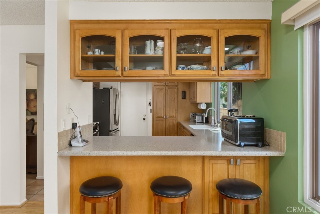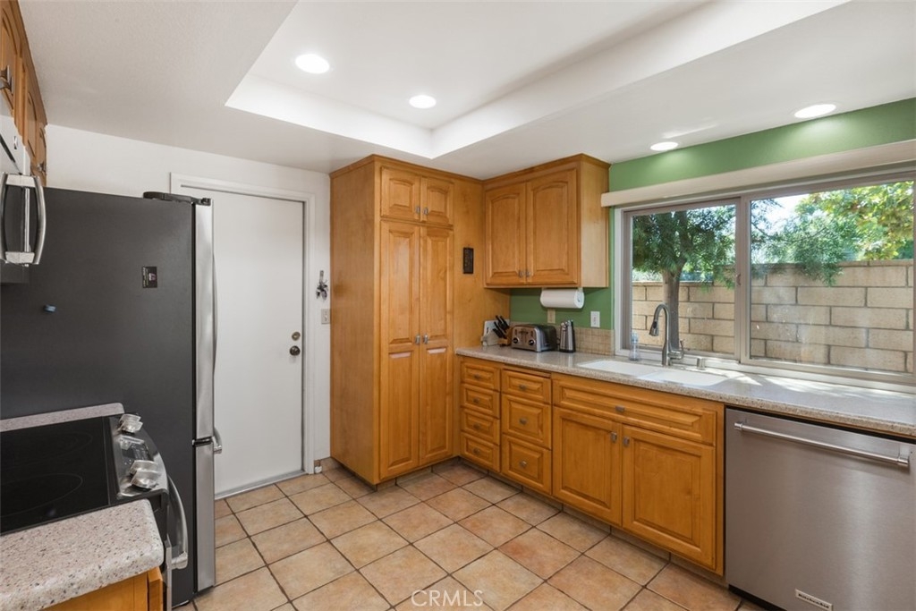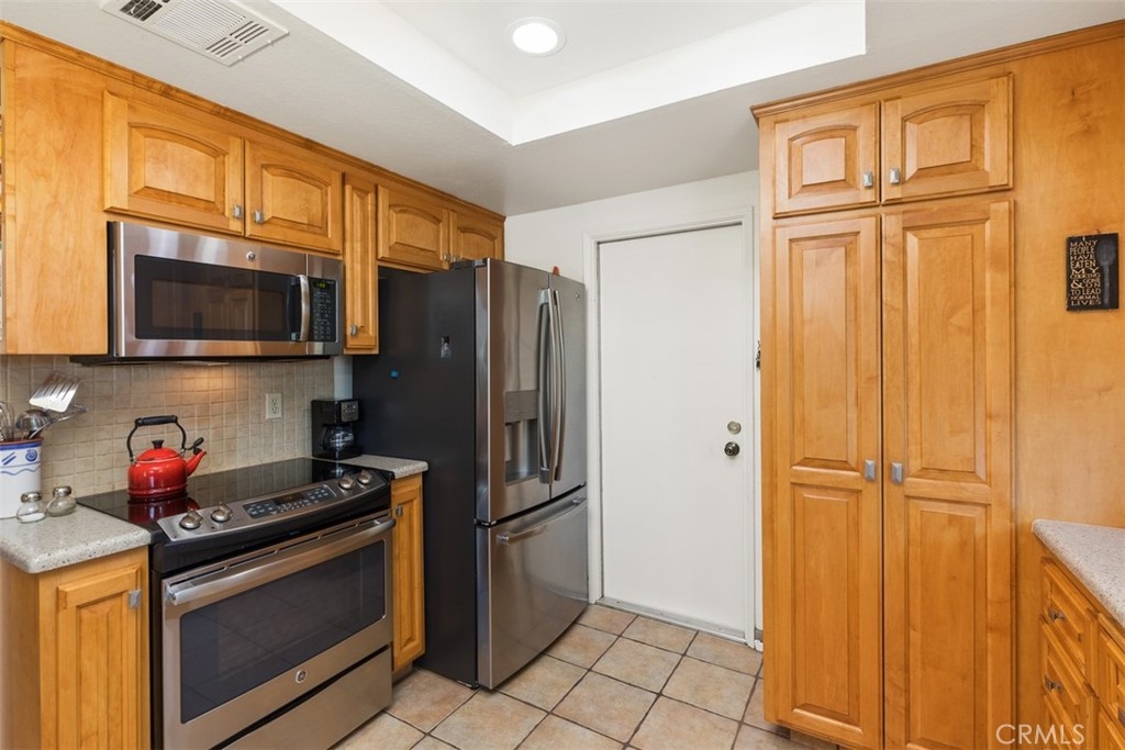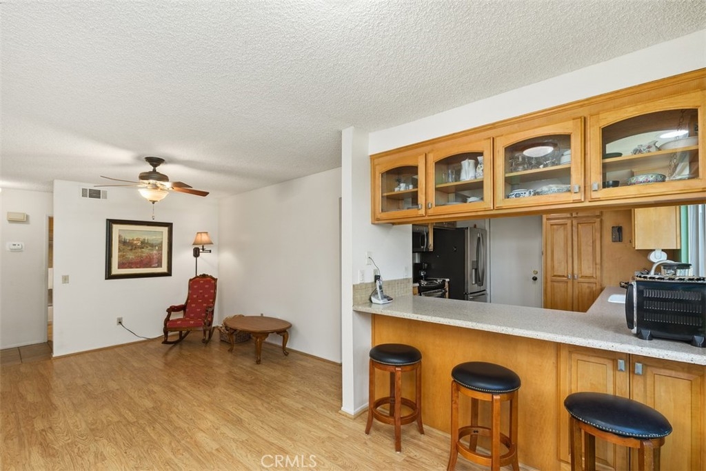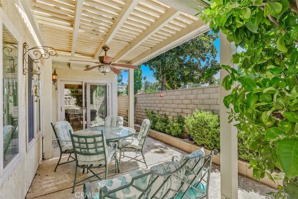 Discover the perfect blend of style, comfort, and convenience in this stunning corner unit that's ready to become your new home! From the moment you step through the beautifully landscaped entry, you'll feel the unique charm that sets this property apart. Whether you're hosting friends or enjoying a quiet evening, the private patio area offers an inviting outdoor space perfect for all your entertaining needs. Inside, the upgraded kitchen is a chef's dream, featuring trendy light wood cabinets, sleek solid surface countertops, and stainless steel appliances. The gooseneck faucet adds a modern touch, while the glass cabinet doors give the space an elegant, open feel. This home boasts newer dual-pane windows that flood each room with natural light while keeping things energy-efficient. The solid surface floors throughout most of the home are as durable as they are stylish, perfectly complemented by the crisp white wood shutters. Ceiling fans are thoughtfully placed throughout the home to keep you cool and comfortable year-round. Step out back, and you'll find an easy-to-maintain yard that's designed for relaxation and enjoyment. The hardscape design, mature landscaping, and patio cover (complete with a ceiling fan) create a serene outdoor retreat that's low on upkeep but high on enjoyment. But the benefits don't stop at your doorstep! This community offers fantastic amenities, including a sparkling pool, a tennis court for those who love to stay active, and RV storage space for your adventurous side. Location is key, and this home delivers! Situated directly across from the popular Poly High School and just a stone's throw away from major big-box retailers and a variety of dining options, you'll have everything you need right at your fingertips. Don’t miss out on this incredible opportunity to own a home that truly has it all. Act fast before this beauty is gone! Your dream home is waiting, but it won’t wait for long!