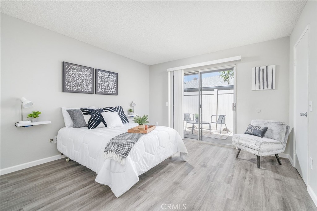 Turnkey two bedroom two bath single level condo in the gated community of Casa De Oro! Walking distance to UC Riverside, and University Village. This home has been completely remodeled with beautiful vinyl plank flooring throughout. The open kitchen has modern white shaker cabinets, and gray quartz countertops, with a stainless steel stove, and stainless steel vent hood. There is a quaint dining area near the kitchen that looks over towards the living room. There is a fireplace in the living room area. Each of the bedrooms are ample sized, with the master bedroom having a sliding door that leads out to private back patio area. Each of the bedroom has been remodeled with elegant vanities, and new tub/shower units. There is are two assigned parking spaces for this unit, and additional guest parking spots available as well. HOA amenities include a community pool and BBQ area on site, as well as laundry room. HOA fees include water and trash. Make this great home yours today!