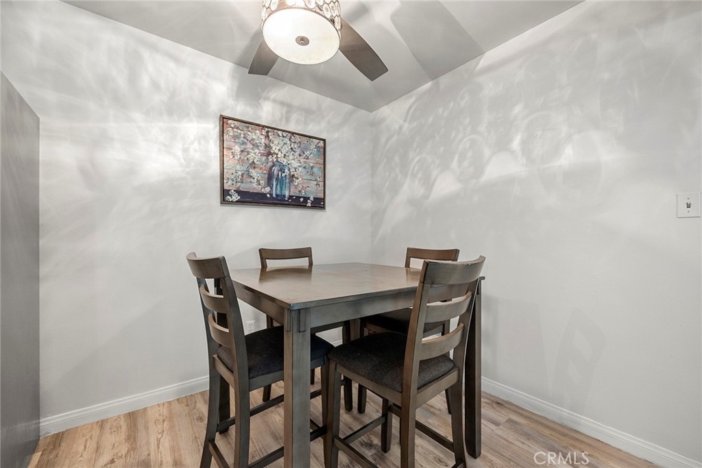 Spacious updated single-story 2 bedroom 1.75 bath condominium in a gated community. Newer vinyl plank flooring in the kitchen, bathrooms and eating area. New carpet in living room and bedrooms. Large sliding glass doors lead to the private wall-fenced and gated patio. The kitchen was recently remodeled to include quartz countertops, stainless steel appliances and a stackable washer and dryer. The primary bedroom has its own large walk in closet and private 3/4 bath. The 2nd bedroom has large closet and has the full bathroom across the hall. There is one covered parking carport space with storage and additional parking (first come first serve spots). Unit is located in a gated complex and located at the far left of the complex with open parking spaces across from condo. It is conveniently and perfectly located near old town Riverside for restaurants and shopping, Riverside Mission Inn, UCR, Riverside Community College and CBU. The Homeowners Association pays for the water, trash, exterior maintenance, and security gates.
