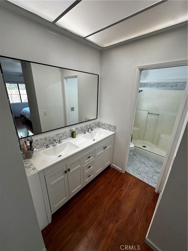 BACK ON THE MARKET! Presenting a single-story, 2 bedroom, 2 bathroom condo with an attached two-car garage, situated in the desirable Barclay Square community. This residence is conveniently located within walking distance to the community pool and spa, offering an exceptional level of privacy that is uncommon for condos. Experience a unique lifestyle that transcends typical condo living in this gated community, ideal for commuters with its central location just minutes from the 91 Freeway, between the 15 and 215 freeways. Highlights of this home include private backyard, a cozy fireplace, and an open-concept layout, central heating and AC, extra plus that it is on a culdesac!