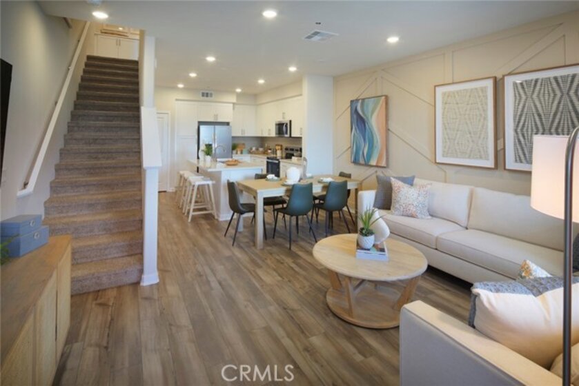Welcome to Sagecrest by Century Communities! This beautiful Tri-level Gated townhome community is located in the heart of Riverside close by the 91 freeway right off Van Buren Blvd. very close to shopping, restaurants and California Baptist University as well as UC Riverside. After entering in from your private enclosed patio, heading up to the second floor you enter a spacious Kitchen with large island and dining area that has a private balcony off Livingroom. The kitchen features " Prelude White" cabinets, quartz counters and back-splash. The second level also includes a bedroom and full bathroom. Going up to the third level you will find an Owner's Suite which includes bathroom with double sinks, walk-in shower and walk-in closet. Finishing the 3rd level there's an additional bedroom with its own private full bathroom and walk-in closet. Laundry room is also conveniently located on third level. Come see this amazing community in person, Sagecrest is a Gated Community and will include a playground, dog park, shade structures and BBQs and more!