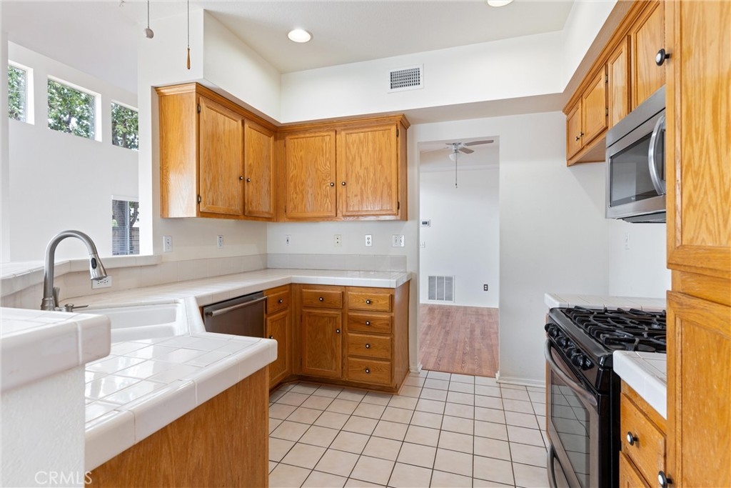 Great location in the Four Seasons Villas! This 3 Bedroom, 3 Bath, End Unit Townhouse offers more privacy and has direct garage access to the home. As you enter, experience the feeling modern spaciousness with an open floor plan, vaulted ceilings, and wood look floors! This wonderful home has views of the hills, a cozy fireplace in the family room, ceiling fans, and a newer air conditioning unit. The primary bedroom features an en suite bathroom and walk-in closet. Conveniently located close to the 91 fwy, shopping centers, restaurants, and centrally located to the La Sierra and the Corona North metro transportation stations.