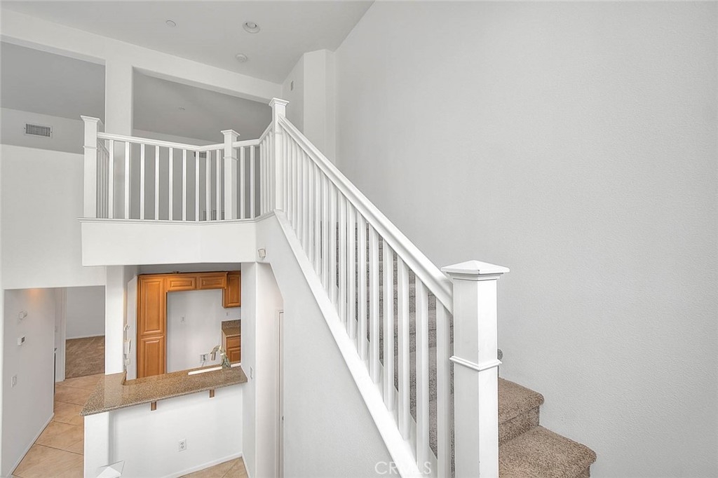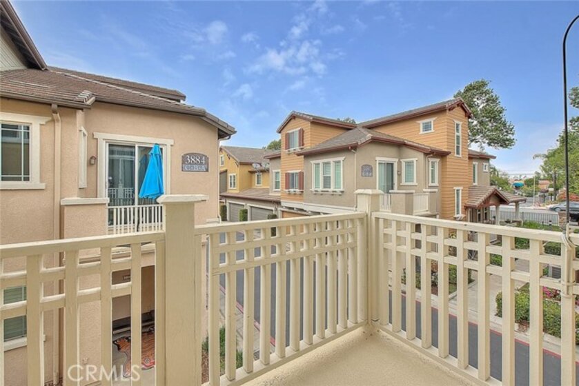 Wonderful 2 bedroom/2 bathroom + loft move-in ready condo! Freshly painted interior and brand new carpeting inside, shows well! Located within the Georgetown Square complex this END unit condo features a great floorplan. Convenient attached one gar garage with direct interior access to the entry level of the unit. (also area within garage for laundry appliances) A staircase takes you to the main living space of the condo which showcases a comfortably sized living room with dramatic high ceilings, soft natural lighting and access to the condo's private balcony. There is neutral tile flooring in the living room, kitchen & both bathrooms. The kitchen has granite counters & attractive wood-toned cabinetry. Both bedrooms are also on the 2nd level as well as a full guest bathroom. The primary bedroom has a ceiling fan, on-suite bathroom with dual sink vanity, shower/tub combo and walk in closet that has built-ins. The guest bedroom enjoys mirrored closet doors with closet system too. There are shutters in both bedrooms, the loft and the living room including the sliders in the living room that lead to the balcony. A spacious loft is on the upper level of the condo which offers great options for a den, home office, play room, etc. This HOA community offers a pool and spa for its residents, playground and well manicured grounds. Riverside boasts the famous Mission Inn Hotel & Spa, a gorgeous contribution to local history. There is abundant shopping and dining options including the Tyler Mall. Located a short drive off the 91 freeway. Your buyers will not be disappointed.