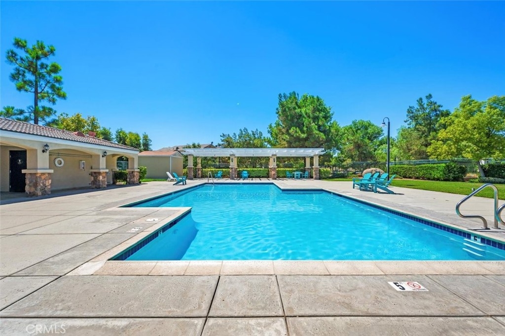 This well-maintained detached single-story home features 2 bedrooms with an office (which can be converted into a 3rd bedroom), 2 bathrooms, and a two-car garage. It is situated in the Coronado/Riverwalk community with an incredible cul-de-sac location. Upon entering, you will be welcomed by a light-filled, inviting open-concept living space that's perfect for entertaining. Continuing on, the open kitchen area showcases marble counters, bar seating for your additional guests, and a spacious dining area that seamlessly connects to the outdoor space. The property boasts a private and low-maintenance yard adorned with numerous fruit trees, offering ample space for relaxation and enjoyment. The bright and airy ambiance extends to the bedrooms and office. The master bedroom features its own private bathroom with a marble sink vanity, along with a closet. The guest bathroom also features a marble tile shower. Central A/C and heating ensure comfort throughout. Impressive community amenities include 2 pools, playgrounds, ponds, bike trails, walking paths, and dog parks. This centrally located home is within walking distance of La Sierra University, multiple elementary schools, parks, Corona Hills Marketplace, the Metrolink station, and the 91 freeway.