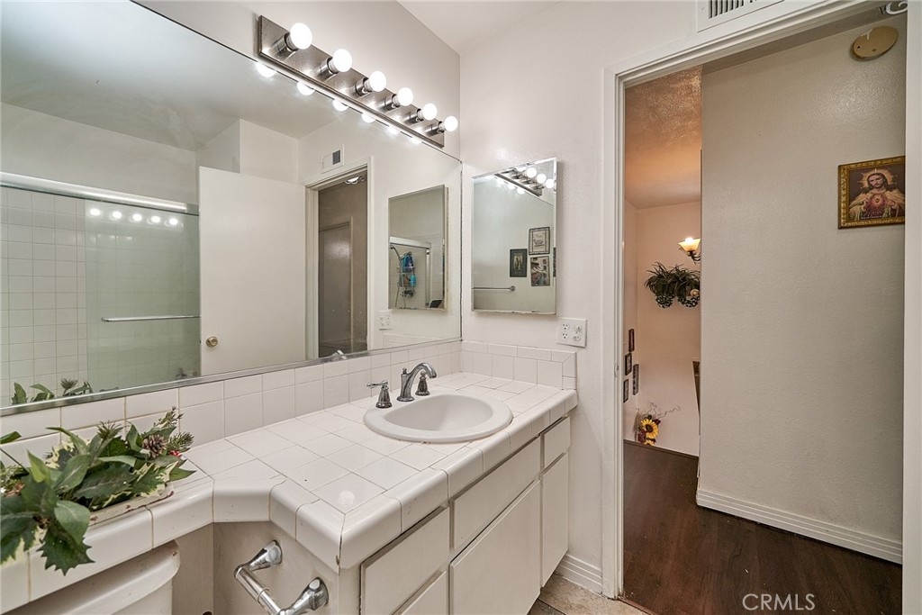 Welcome to this charming and move-in-ready condo in the gated Queen Anne community. This two-story home combines character with modern convenience. Approx. 1,223 sq ft of living space features 3 bedrooms and 1.75 bathrooms. The original garage has been converted into an additional bedroom on the main level. An open living and dining area flows into the kitchen, which is equipped with white tile counters, a stainless steel sink, and a breakfast bar for casual dining. There is under-stair storage on the staircase. Upstairs features the master bedroom with a closet and ceiling fan, as well as a second full bathroom and a secondary bedroom. Central heating & cooling, and in-unit laundry (in a closet). Private gated entry, community pool, 1-carport parking, and multiple parking spaces for additional cars or Guest parking. The Backyard is fenced and private, with no neighbors directly behind the unit. located with easy access to the 60 and 91 freeways for commuting. Shopping, dining, services, and amenities are nearby. Schools in the area include Jackson Elementary, Chemawa Middle, and Ramona High School.