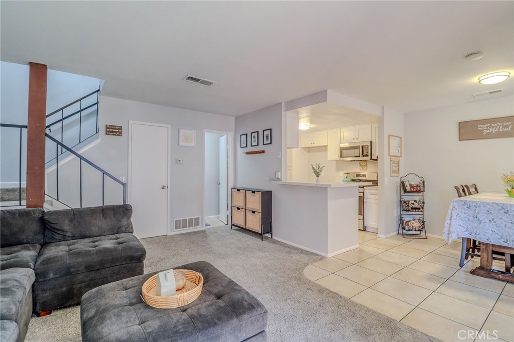 Welcome to this updated and spacious 1,226 sq. ft. home, featuring the largest floor plan in the community. The open-concept main level offers a bright living room with sliding door access, a well-designed kitchen with a cozy breakfast nook, a convenient half bath, and a private 2-car attached garage with laundry hookups. Upstairs, you’ll find three generously sized bedrooms and a full bathroom. The primary suite boasts its own vanity and sink, a walk-in closet, and an abundance of natural light. Recent upgrades include new carpet, fresh interior paint, modern kitchen cabinets and quartz countertops, updated bathroom vanities, new lighting and hardware, and a new garage door, making this home move-in ready. The spacious, covered front patio provides a perfect spot to relax or host casual gatherings. Nestled in a gated community with mature landscaping, a pool, low HOA dues, and low taxes, this home also offers convenient access to nearby shopping, schools, parks, and major freeways.