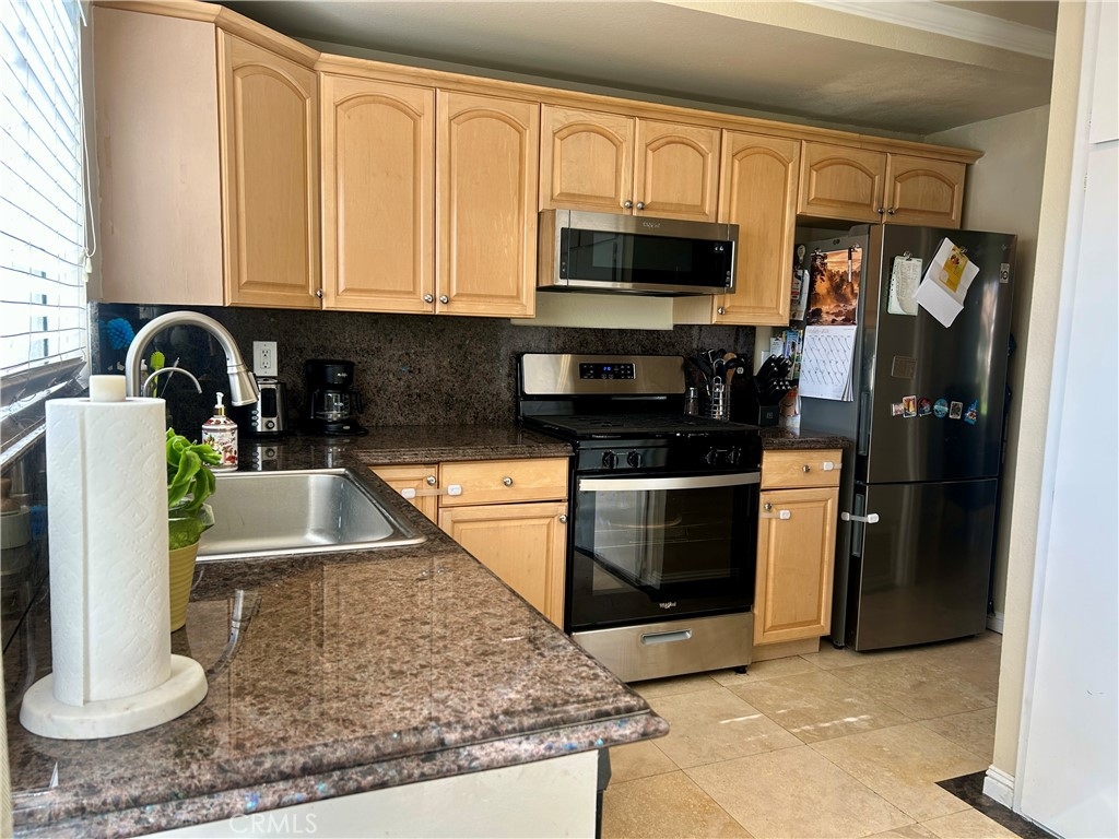 New price for this beautiful two story townhome in Riverside. It features three bedrooms (all upstairs) and two and a half bathrooms. You'll enter into a large living room with pretty travertine tile flooring and crown molding. The sunny kitchen has ample countertop space, plus room for a dining table. You'll appreciate the updated downstairs powder room for guests, and the convenient inside laundry, too. The upstairs has updated wood flooring. The primary bedroom features a private, updated bath with tiled shower. The hall bath is also updated and has a tub/shower combination. There is a detached two car garage and private back yard. The HOA fee includes water, trash, exterior building insurance, and front yard and common area landscaping. Centrally located in Riverside, close to Riverside Plaza, Trader Joes, Cal Baptist University, UCR. Medical services, and downtown Riverside! This well kept community has walking paths, grass, trees and is highly sought after. This would be a perfect first home, rental, or 1031 exchange. Homes in this community rarely come on the market, plan your visit today!