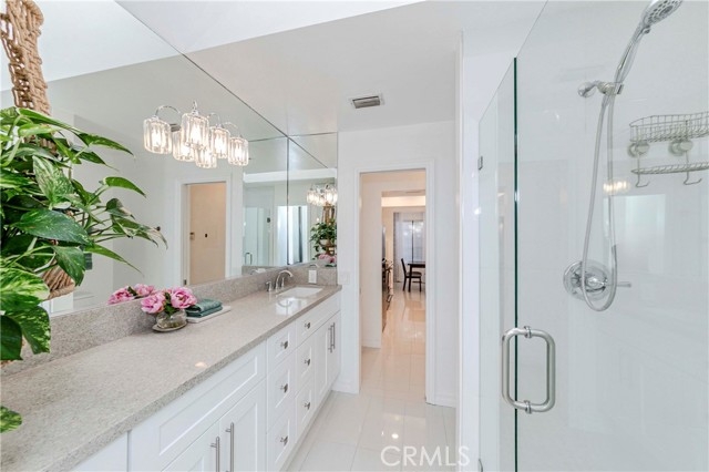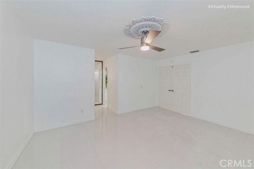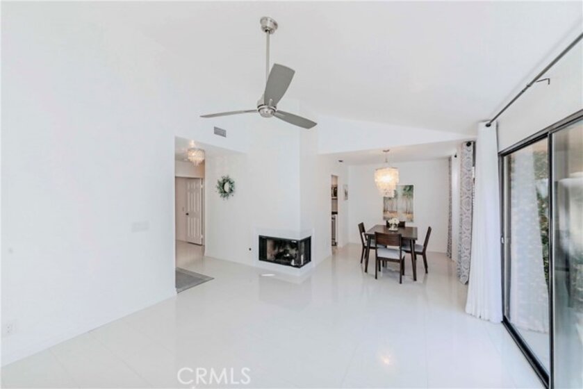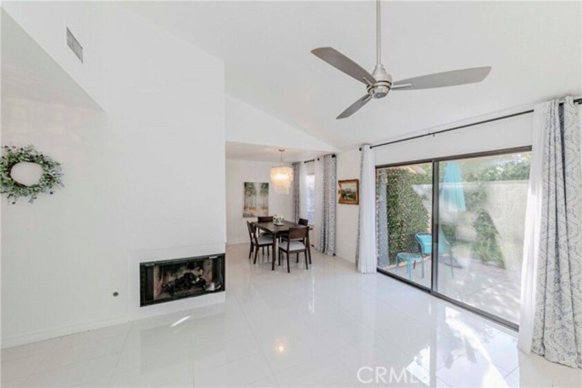 Welcome to this charming single-story condo (NO on above) in the desirable Canyon Creek Community. This bright home features an open floor plan with large windows that bring in abundant natural light, and a Titan security door at the entry allows fresh airflow throughout. The spacious living and dining area offers a cathedral ceiling, cozy fireplace, ceiling fan, and elegant porcelain flooring. The remodeled kitchen includes custom cabinetry, quartz countertops, recessed LED lighting, and stainless-steel appliances such as a single-bowl sink, stove, microwave, and refrigerator. The master bedroom offers a French door entry and two closets with mirrored doors. The bathroom has been tastefully updated with white shaker cabinets, quartz countertop, frameless shower doors, and full-height mirrors for a spacious feel. A convenient inside laundry area adds to everyday comfort. Enjoy a private patio surrounded by peaceful greenery. A single-car garage with an automatic opener is also included. Conveniently located near UCR, Canyon Crest Shopping Center, local freeways, and Canyon Crest Country Club. The community is just a short walk from a beautiful nature preserve with scenic hiking trails and lovely views.