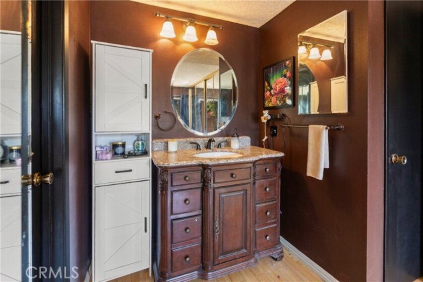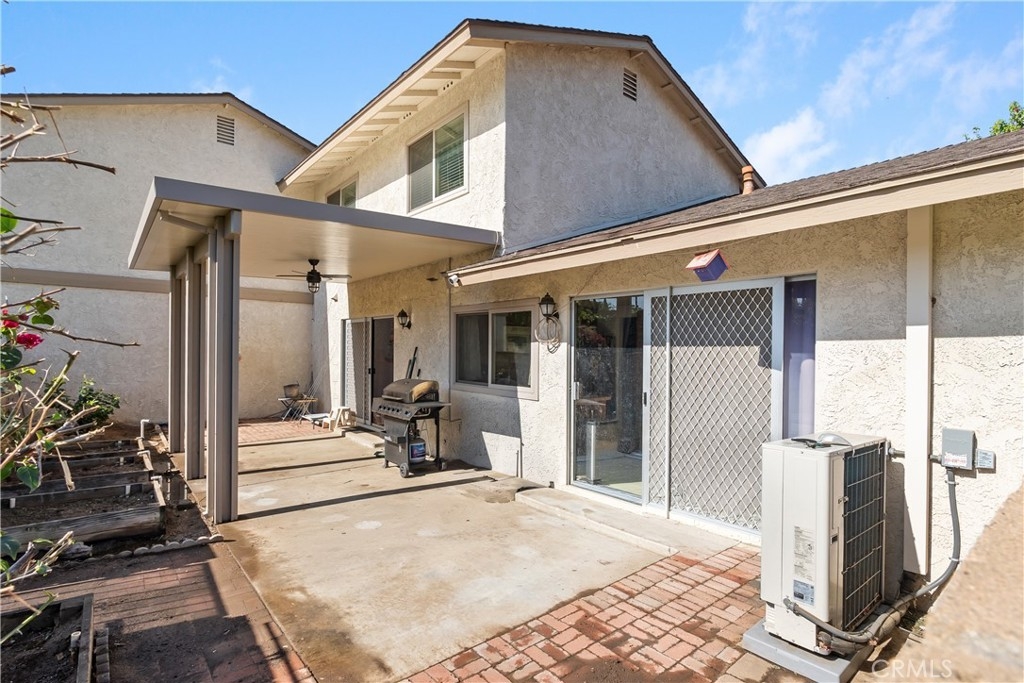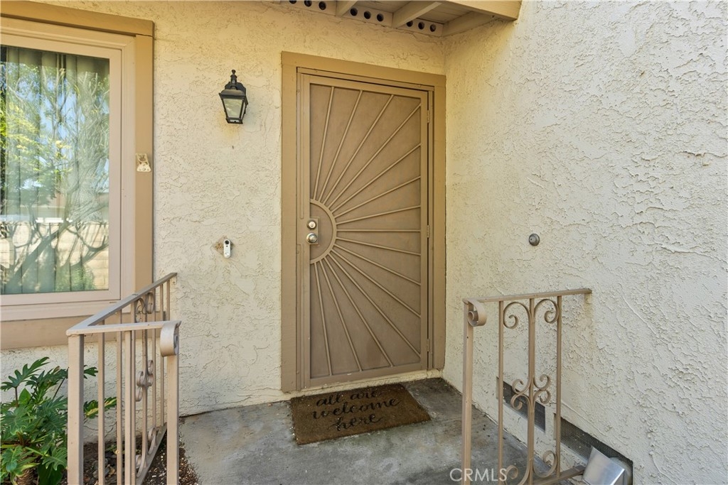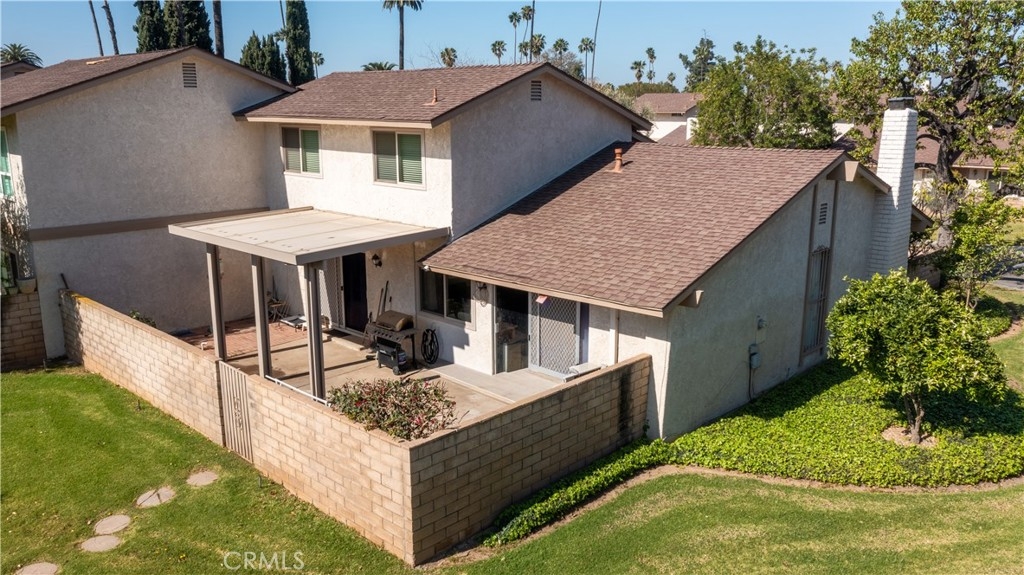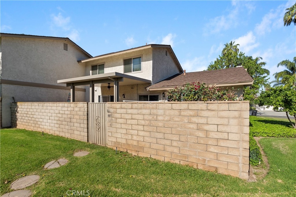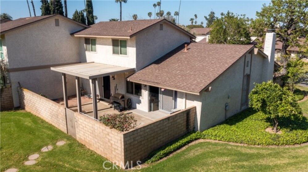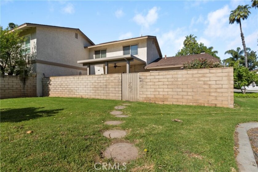 You won't want to miss this one! Rare opportunity to own a two-story end-unit condo in the highly coveted Trees community A private courtyard entry, complete with a mature lemon tree, creates a warm and inviting first impression. Inside, the open-concept layout features laminate flooring throughout the downstairs, soaring vaulted ceilings, and a stunning natural gas fireplace with a stone façade. The living room flows into a versatile flex area - perfect dining, a home office, or hobby nook. The large kitchen is designed for both function and gathering, showcasing newer custom cabinetry with elegant glass inserts, and an eat-in dining space. A sliding glass door opens to the private fenced backyard, creating an easy indoor-outdoor flow. Conveniently located on the main floor, the primary suite offers comfort and privacy with its own sliding door access to the backyard patio. The ensuite bath includes a separate vanity area, private shower and water closet. Mirrored sliding closet doors span an entire wall, framing the spacious closet. A standout architectural feature is the custom, hand-crafted solid wood staircase, featuring rich wood stairs and treads that add warmth and character to the home. Upstairs, you’ll find two additional spacious bedrooms with generous closets and large windows that fill the rooms with natural light, while offering peaceful unobstructed views without a neighbor directly behind. The private backyard is fully enclosed with block fencing for added privacy and includes gated access to the community grounds; raised garden beds, plus a newer covered patio shades the seating area. Lemon, orange and avocado trees pay tribute to Riverside’s rich citrus and agricultural heritage. The community offers meticulously maintained grounds, lighted walking paths, lush greenbelts, mature trees, a basketball court, and a resort-style pool and spa with cabana area for dining and grilling. Located along beautiful Victoria Avenue - one of the city’s most beloved scenic corridors, which spans most of the city with stunning trees of several varietals, flowering rose bushes, walking paths, and Riverside's famous orange groves. Centrally located, this home is just minutes from local dining, shopping, entertainment, churches, and convenient freeway access, making it the perfect blend of tranquil community living, a resort style feel, and everyday convenience.