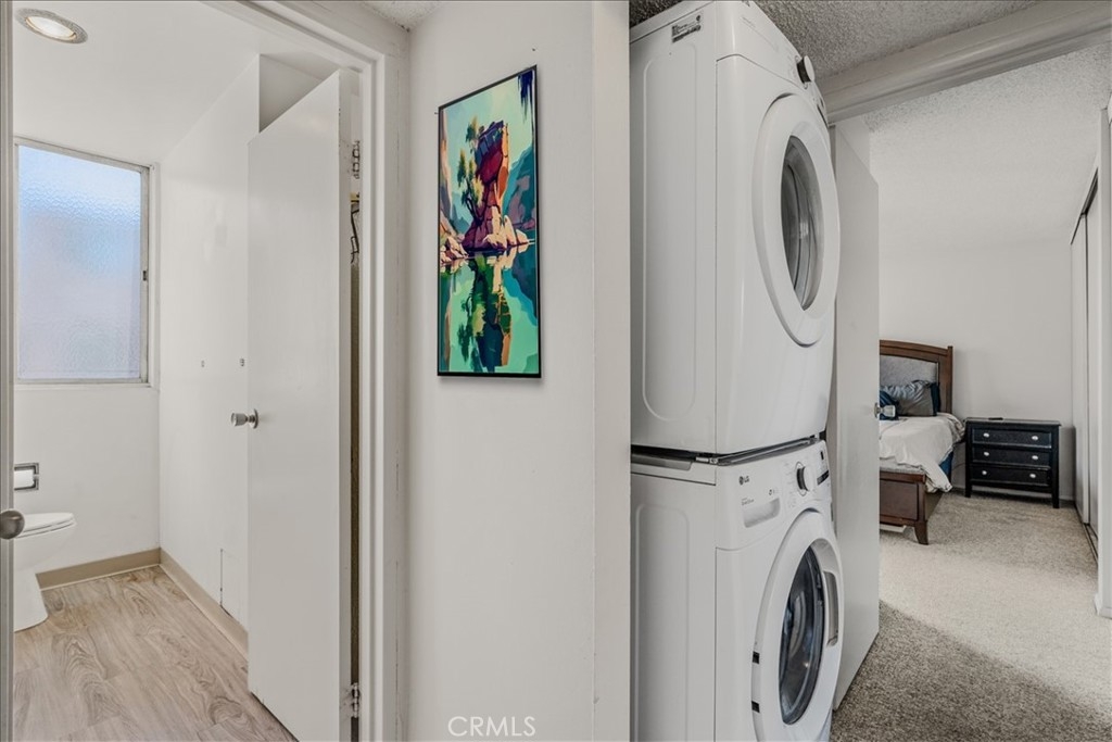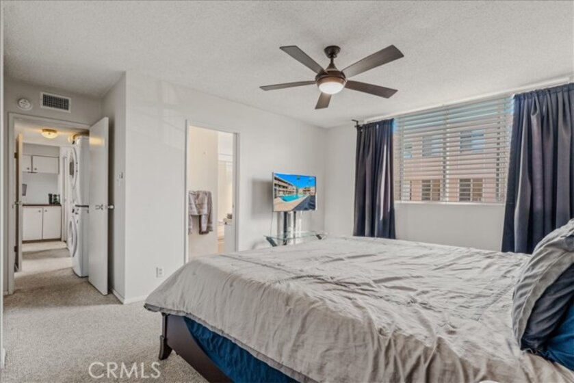 This inviting two-bedroom, two-bath unit is nestled on the second floor. As you enter the spacious living room, you'll be greeted by magnificent floor-to-ceiling windows that flood the area with natural light. This community provides a resort-like atmosphere with a courtyard featuring a sparkling pool and spa, surrounded by beautifully landscaped picnic areas that enhance its outdoor charm. Enjoy leisurely afternoons by the pool or host gatherings in the lush surroundings. Convenience is key in this condo, with in-unit laundry centrally located between both bedrooms. Easy elevator access from the underground parking simplifies transport for your belongings. Additionally, this unit includes a generous storage cabinet, ensuring ample space for all your items. Centrally located, you'll find yourself just moments away from shopping, transit, and a variety of restaurants. Riverside Plaza is just a short bike ride away, offering vibrant entertainment and cultural experiences. This property is an exceptional starter home or downsizing option in a prime location, combining comfort, style, and accessibility. Don't miss the chance to make this your own! Schedule a showing today!